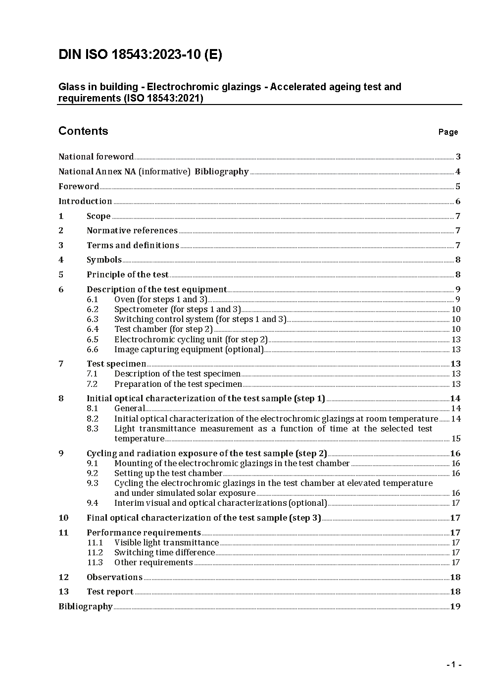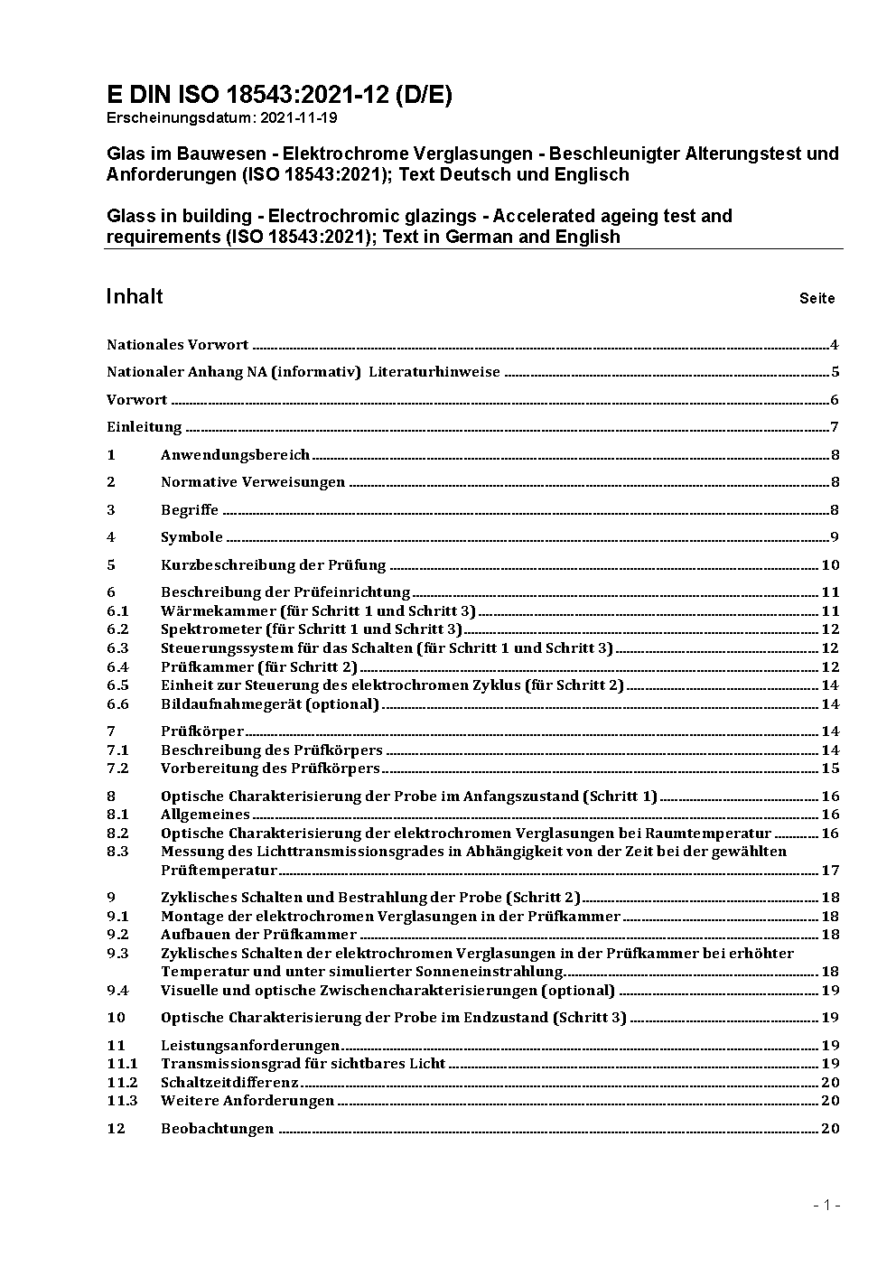 Glas im Bauwesen - Elektrochrome Verglasungen - Beschleunigter Alterungstest und Anforderungen (ISO 18543:2021)