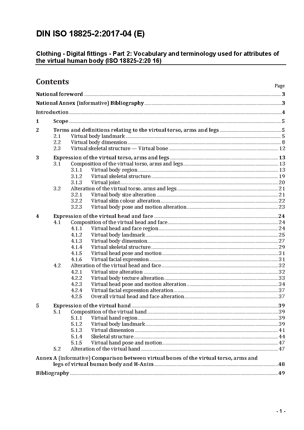 Bekleidung - Digitale Anproben - Teil 2: Vokabular und Terminologie für die Merkmale des virtuellen menschlichen Körpers (ISO 18825-2:2016)
