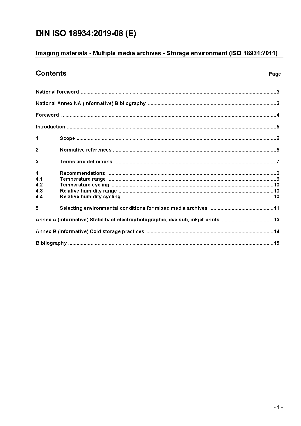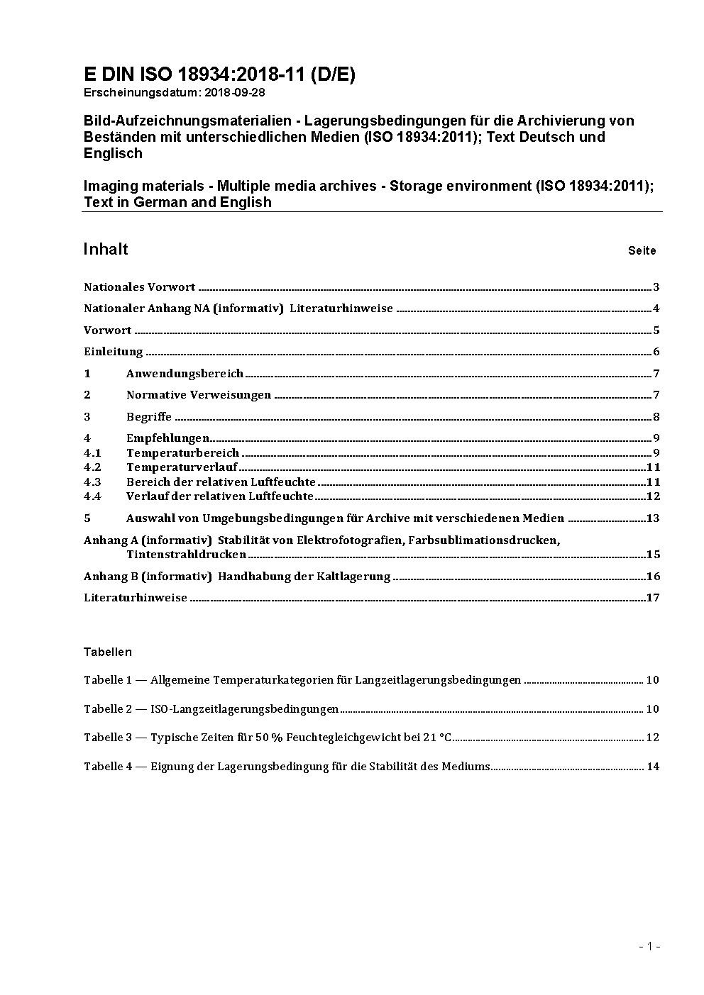 Bild-Aufzeichnungsmaterialien - Lagerungsbedingungen für die Archivierung von Beständen mit unterschiedlichen Medien (ISO 18934:2011); Text Deutsch und Englisch