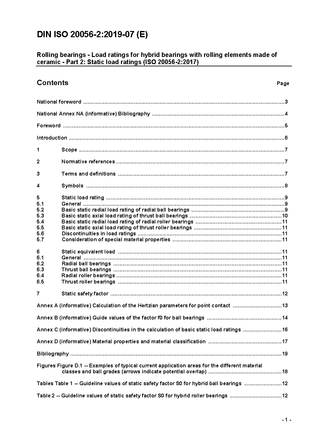 Rolling bearings - Load ratings for hybrid bearings with rolling elements made of ceramic - Part 2: Static load ratings (ISO 20056-2:2017); Text in German and English