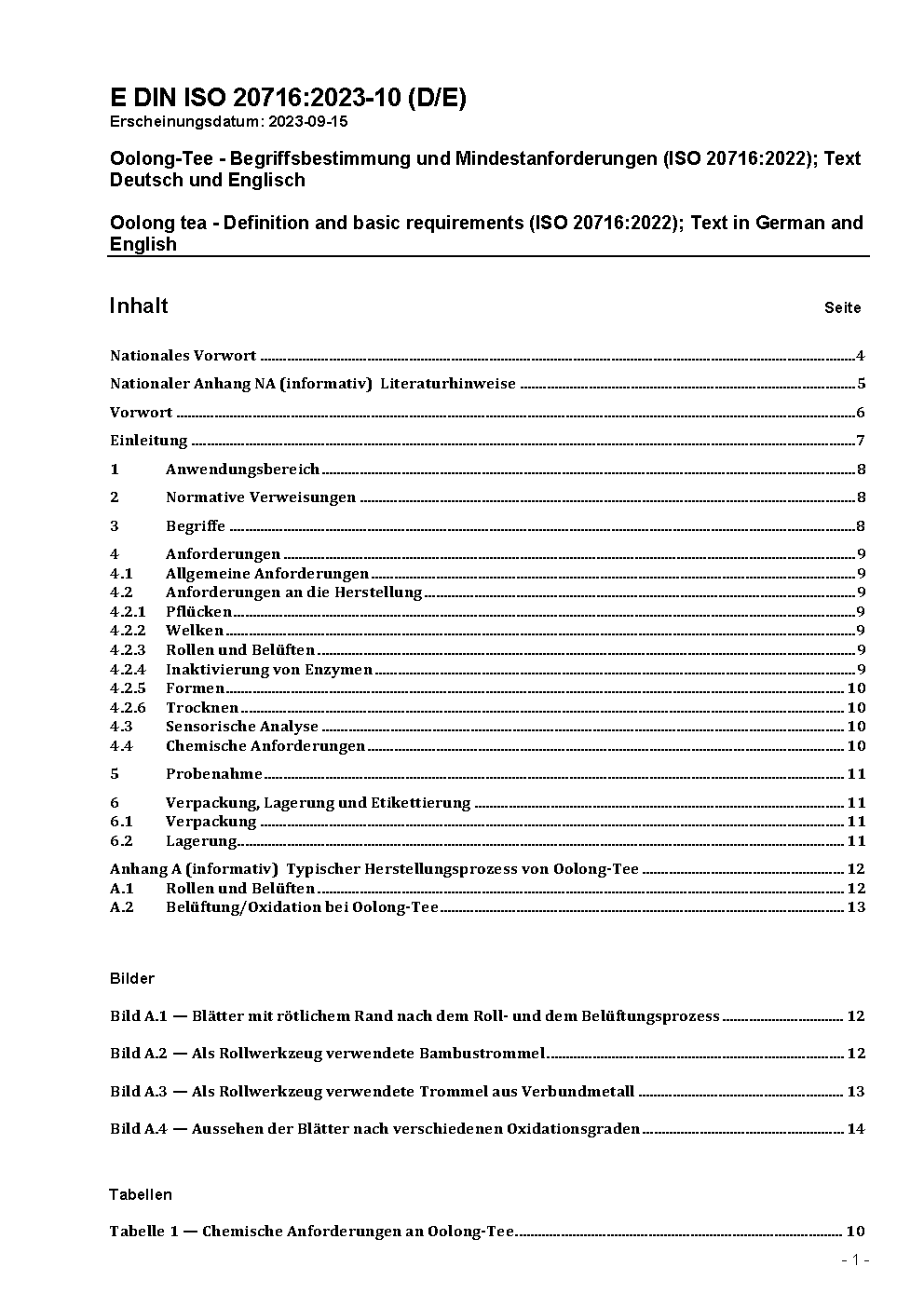 Oolong tea - Definition and basic requirements (ISO 20716:2022); Text in German and English