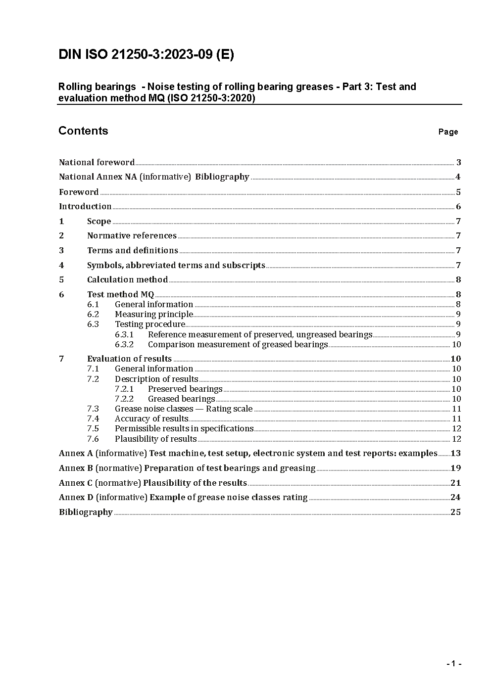 Rolling bearings - Noise testing of rolling bearing greases - Part 3: Test and evaluation method MQ (ISO 21250-3:2020).
