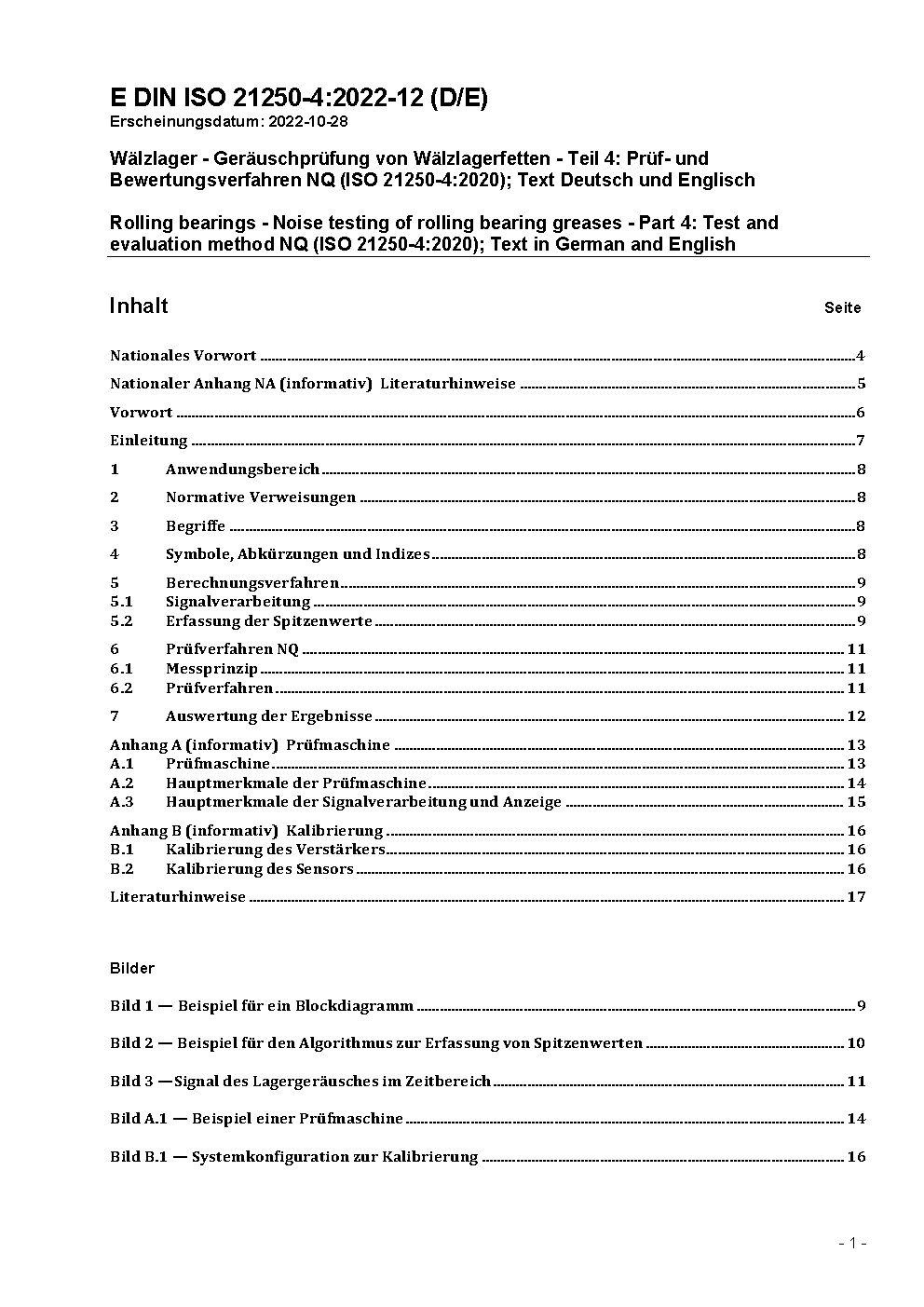 Wälzlager - Geräuschprüfung von Wälzlagerfetten - Teil 4: Prüf- und Bewertungsverfahren NQ (ISO 21250-4:2020)