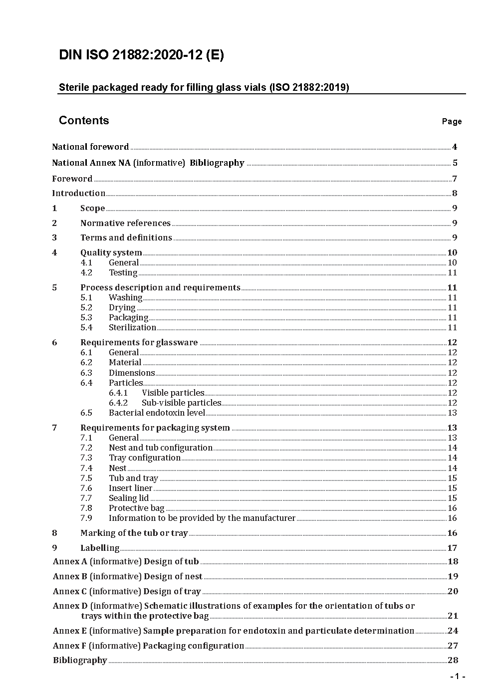 Sterile packaged ready for filling vials (ISO/DIS 21882:2018); Text in German and English