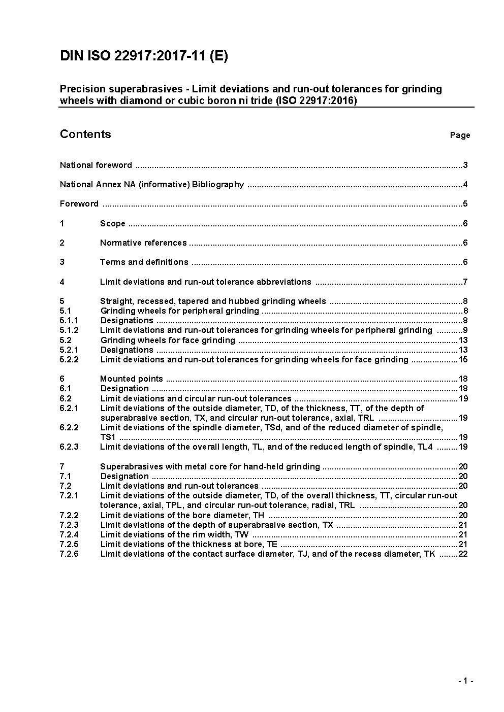 Superabrasives - Limit deviations and run-out tolerances for grinding wheels with diamond or cubic boron nitride (ISO 22917:2004)
