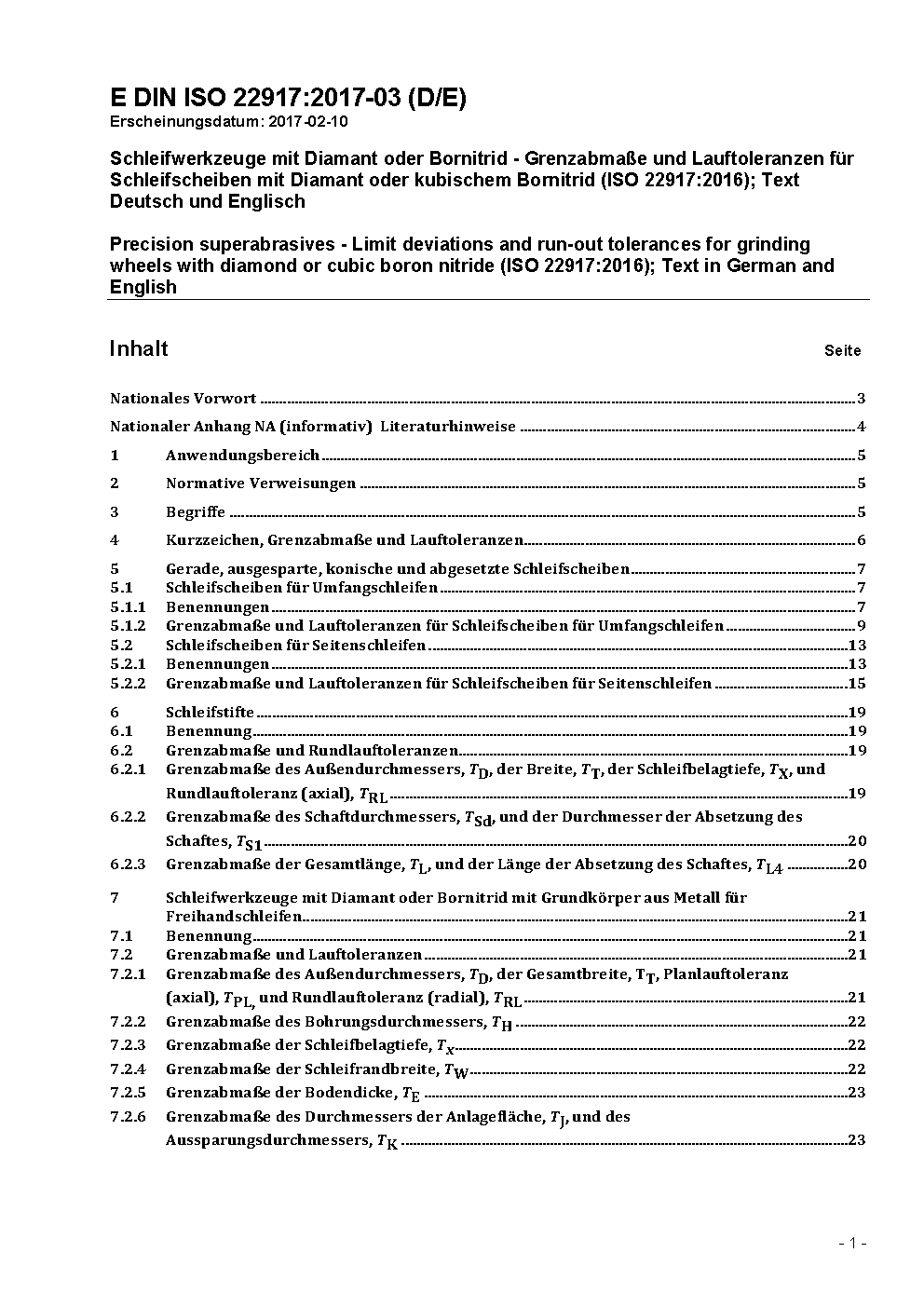 Schleifwerkzeuge mit Diamant oder Bornitrid - Grenzabmaße und Rundlauftoleranzen für Schleifscheiben mit Diamant oder kubischem Bornitrid (ISO 22917:2004)