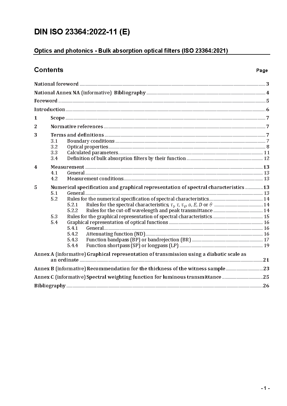 Optics and photonics - Bulk absorption optical filters (ISO 23364:2021); Text in German and English