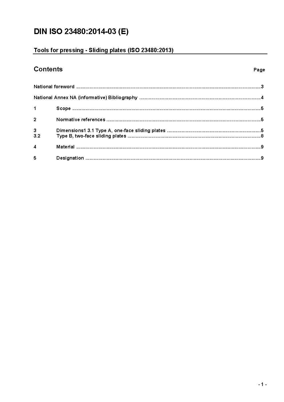 Tools for pressing - Sliding plates (ISO 23480:2008)