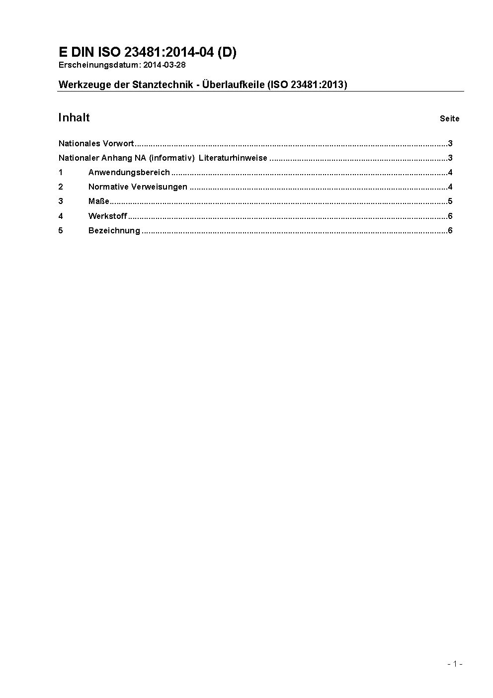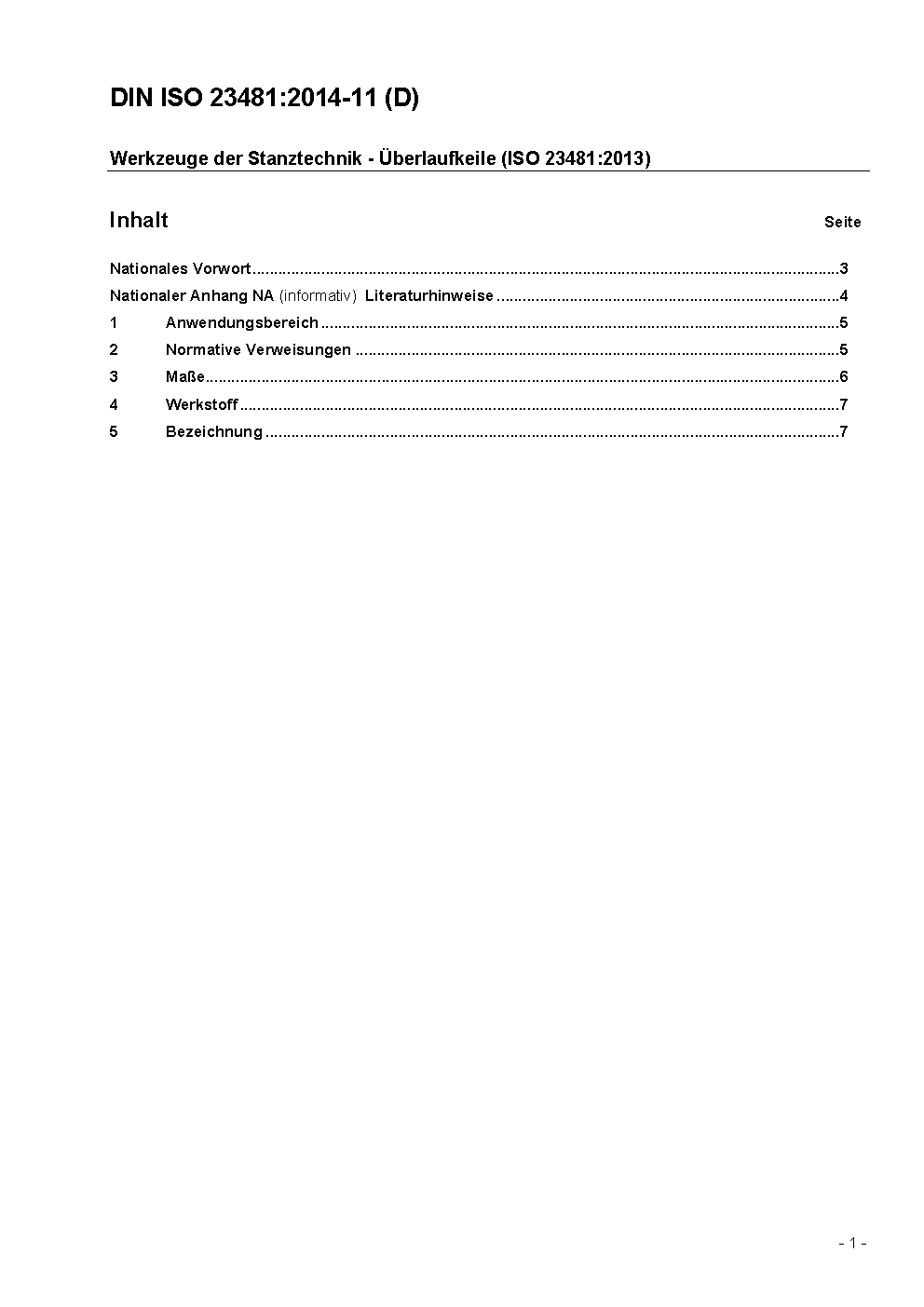 Werkzeuge der Stanztechnik - Überlaufkeile (ISO 23481:2008)