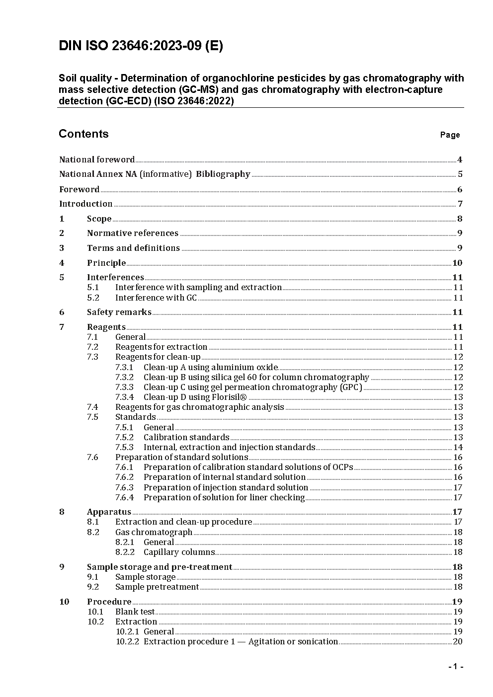 Soil quality - Determination of organochlorine pesticides by gas chromatography with mass selective detection (GC-MS) and gas chromatography with electron-capture detection (GC-ECD) (ISO 23646:2022); Text in German and English