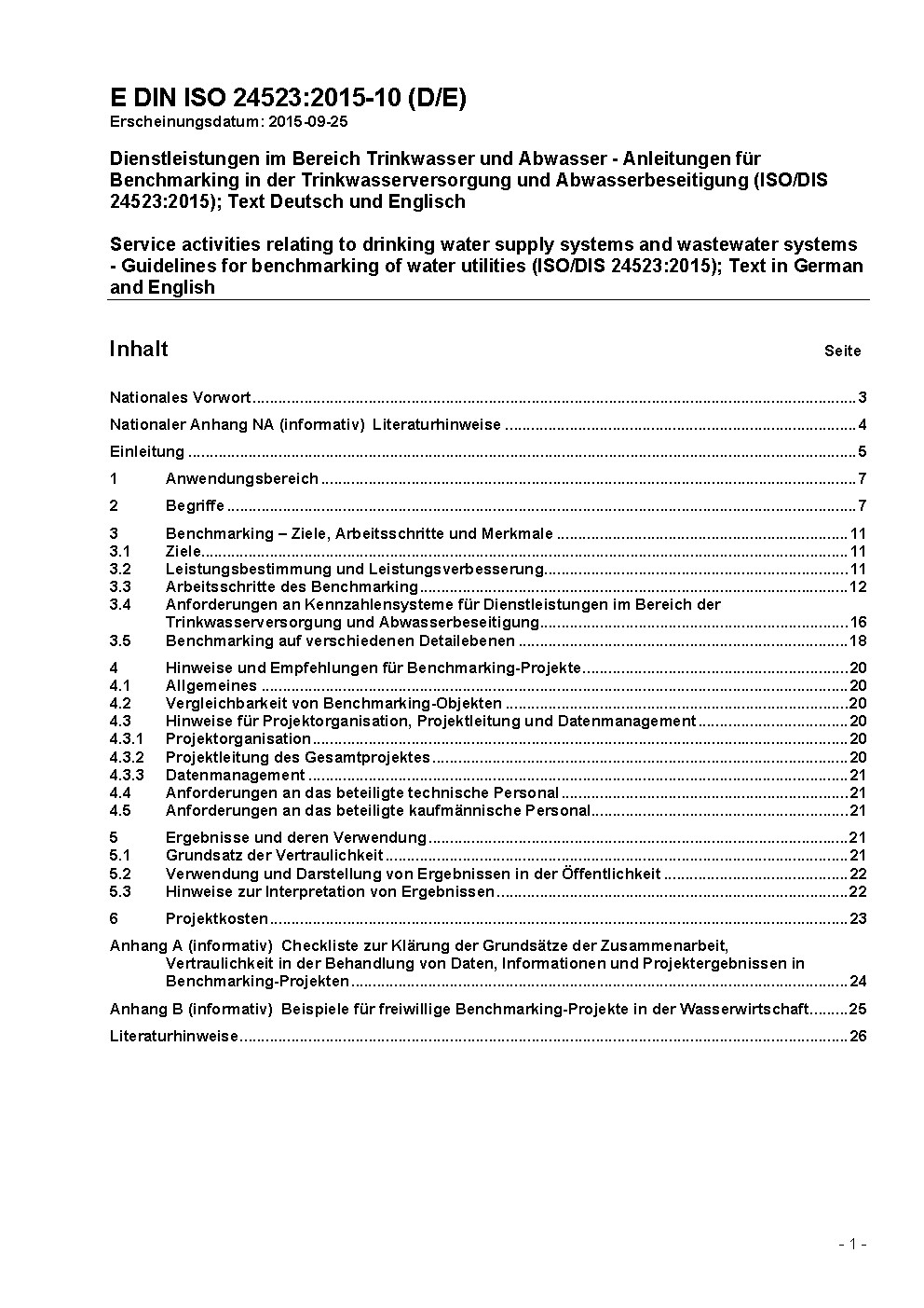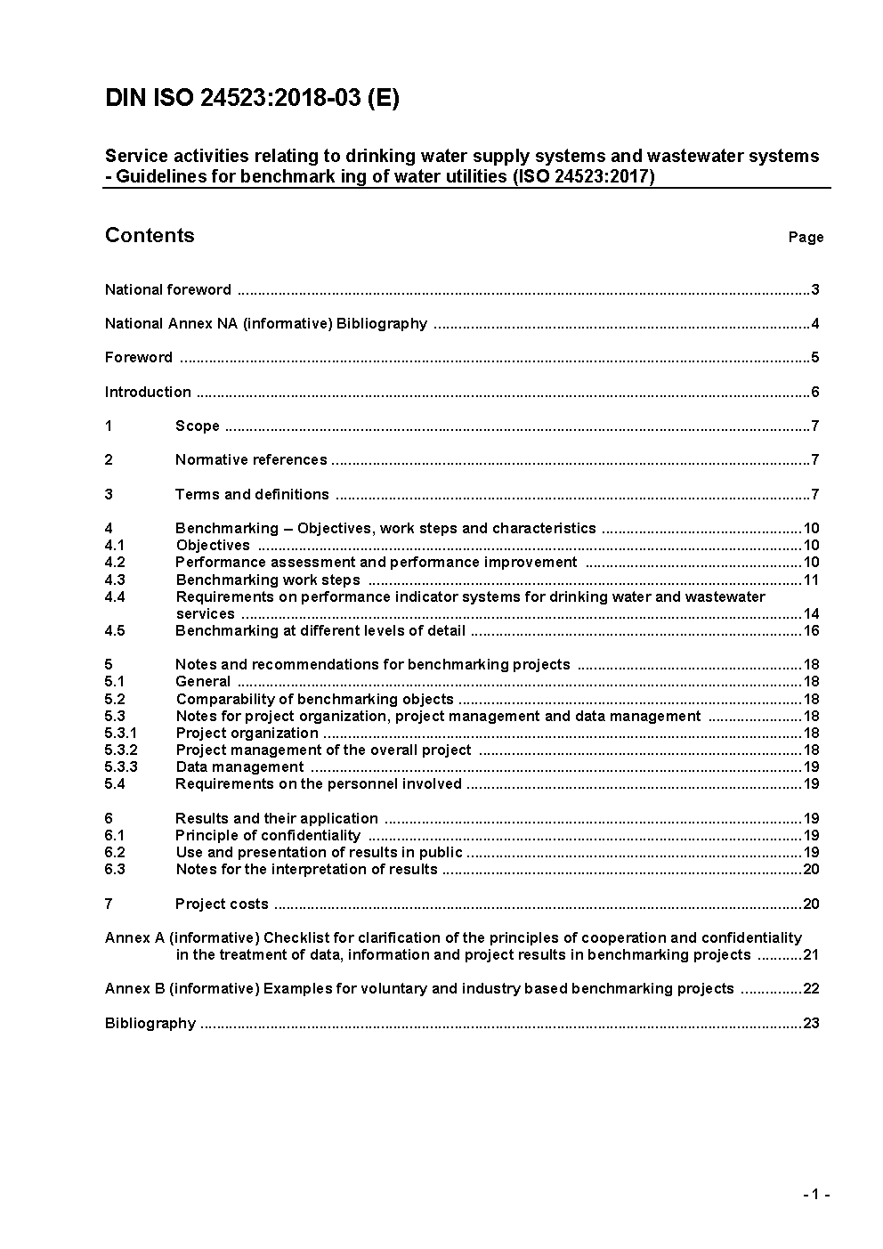 Service activities relating to drinking water supply systems and wastewater systems - Guidelines for benchmarking of water utilities (ISO 24523:2017).