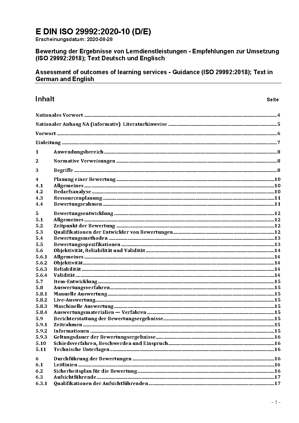 Bewertung der Ergebnisse von Lerndienstleistungen - Empfehlungen zur Umsetzung (ISO 29992:2018)