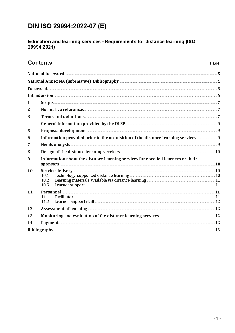 Education and learning services - Requirements for distance learning (ISO 29994:2021)