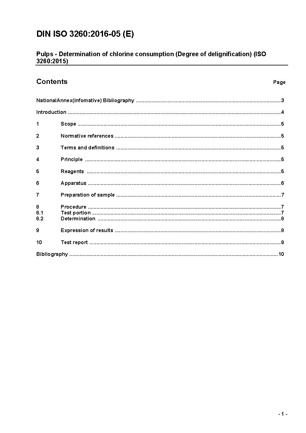 Pulps - Determination of chlorine consumption (Degree of delignification) (ISO 3260:2015)
