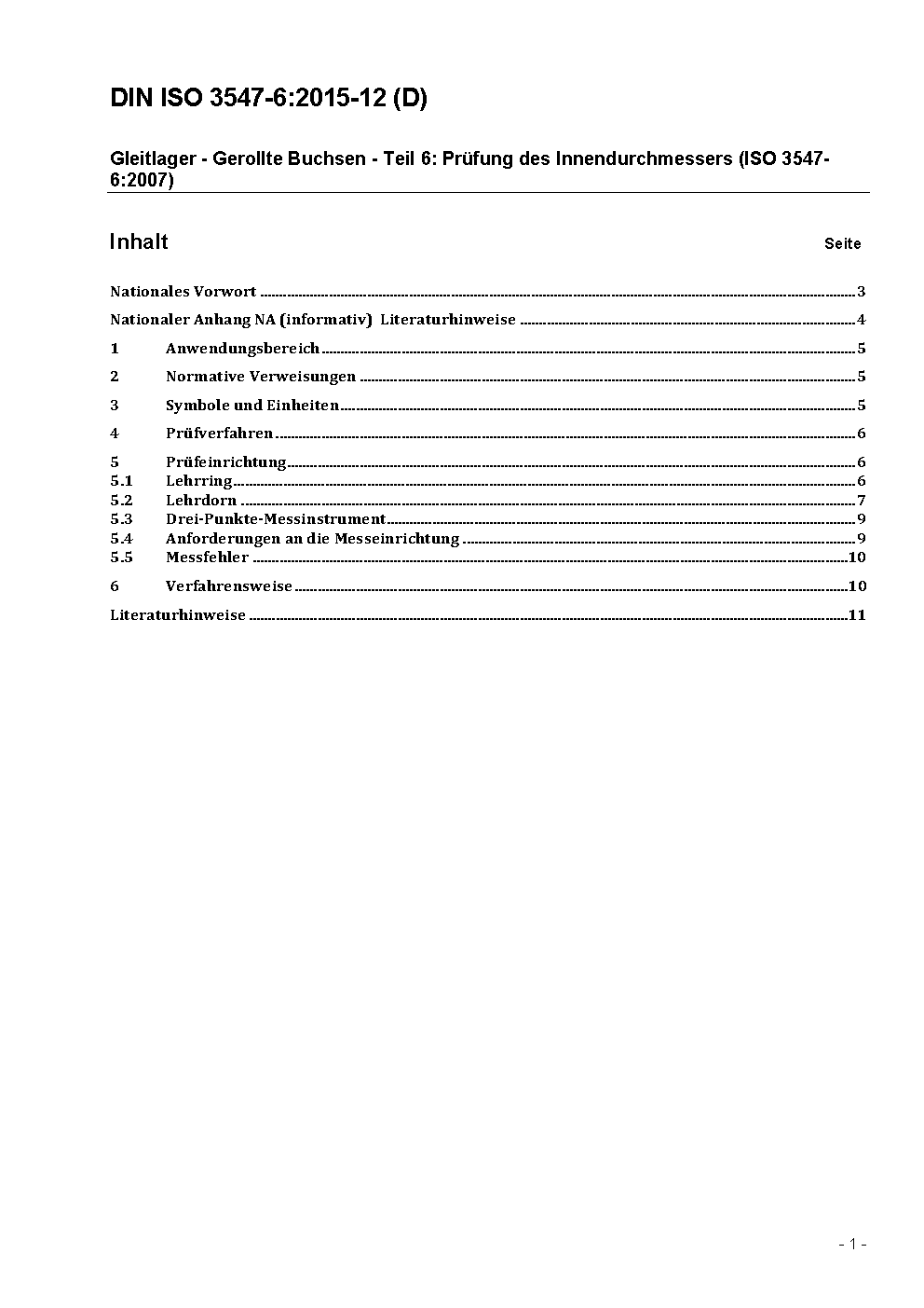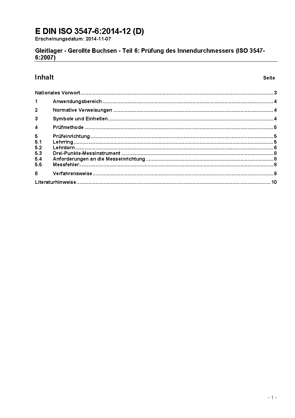 Gleitlager - Gerollte Buchsen - Teil 6: Prüfung des Innendurchmessers (ISO 3547-6:2007)