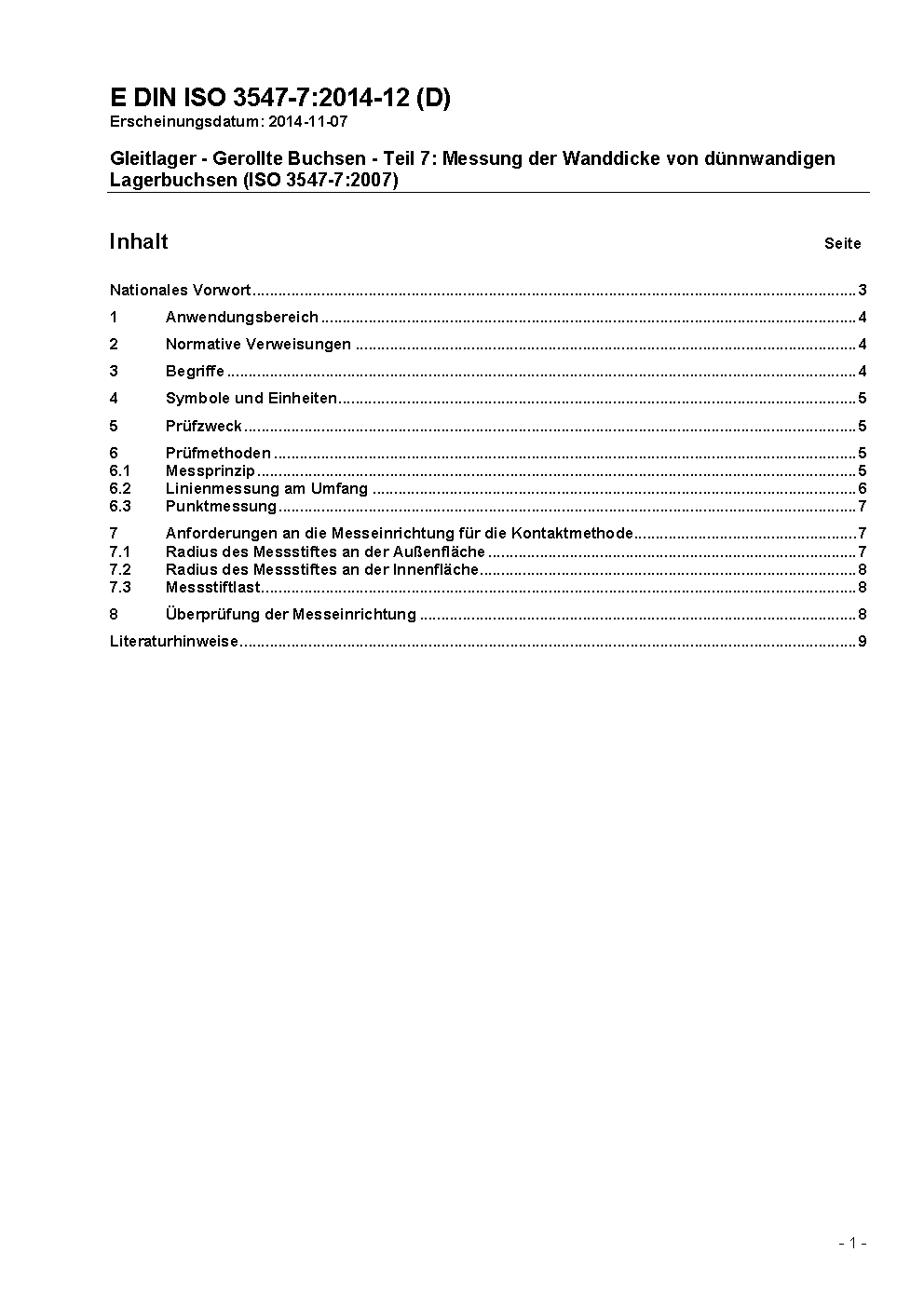 Gleitlager - Gerollte Buchsen - Teil 7: Messung der Wanddicke von dünnwandigen Lagerbuchsen (ISO 3547-7:2007)