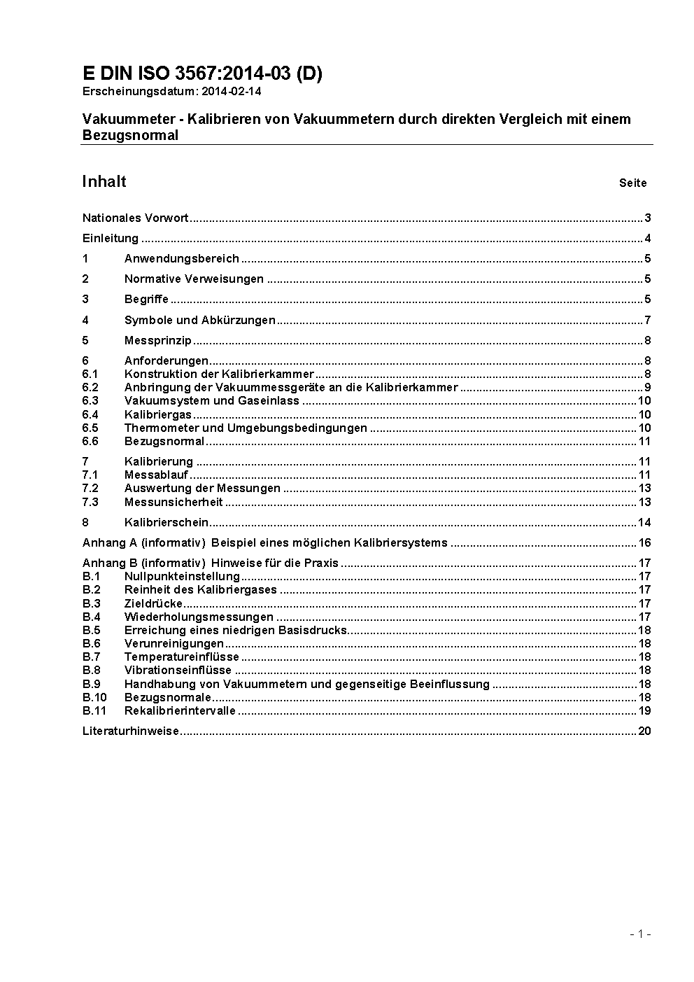 Vakuummeter - Kalibrieren von Vakuummetern durch direkten Vergleich mit einem Bezugsnormal (ISO 3567:2011)