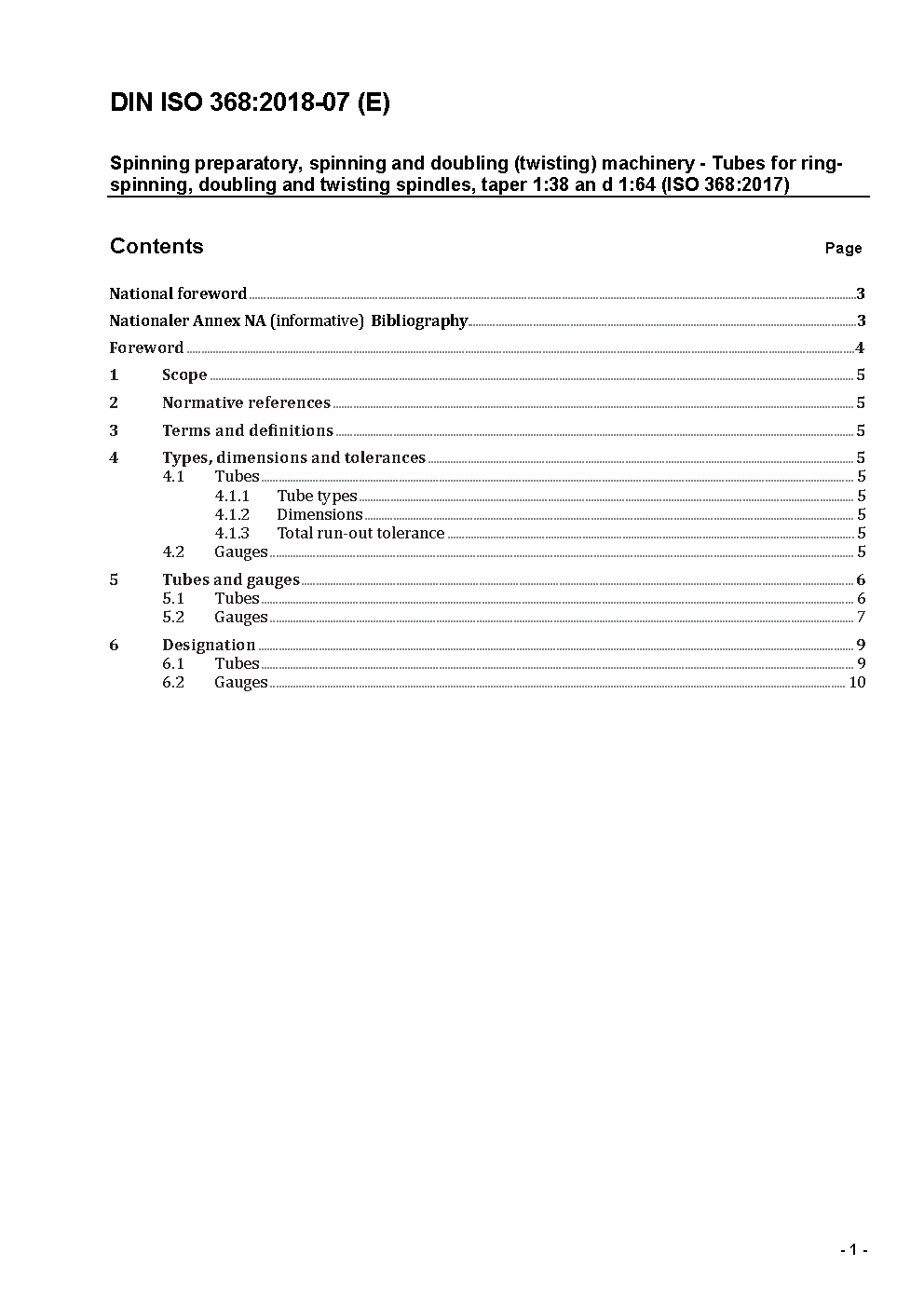 Spinning preparatory, spinning and doubling (twisting) machinery - Tubes for ring-spinning, doubling and twisting spindles, taper 1:38 and 1:64 (ISO/CD 368:2004)