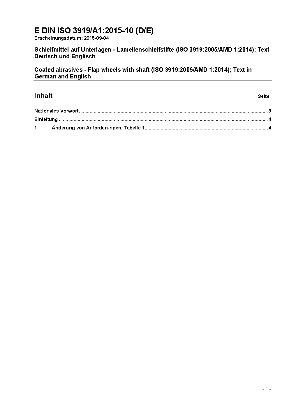 Schleifmittel auf Unterlagen - Lamellenschleifstifte (ISO/DIS 3919:2003)