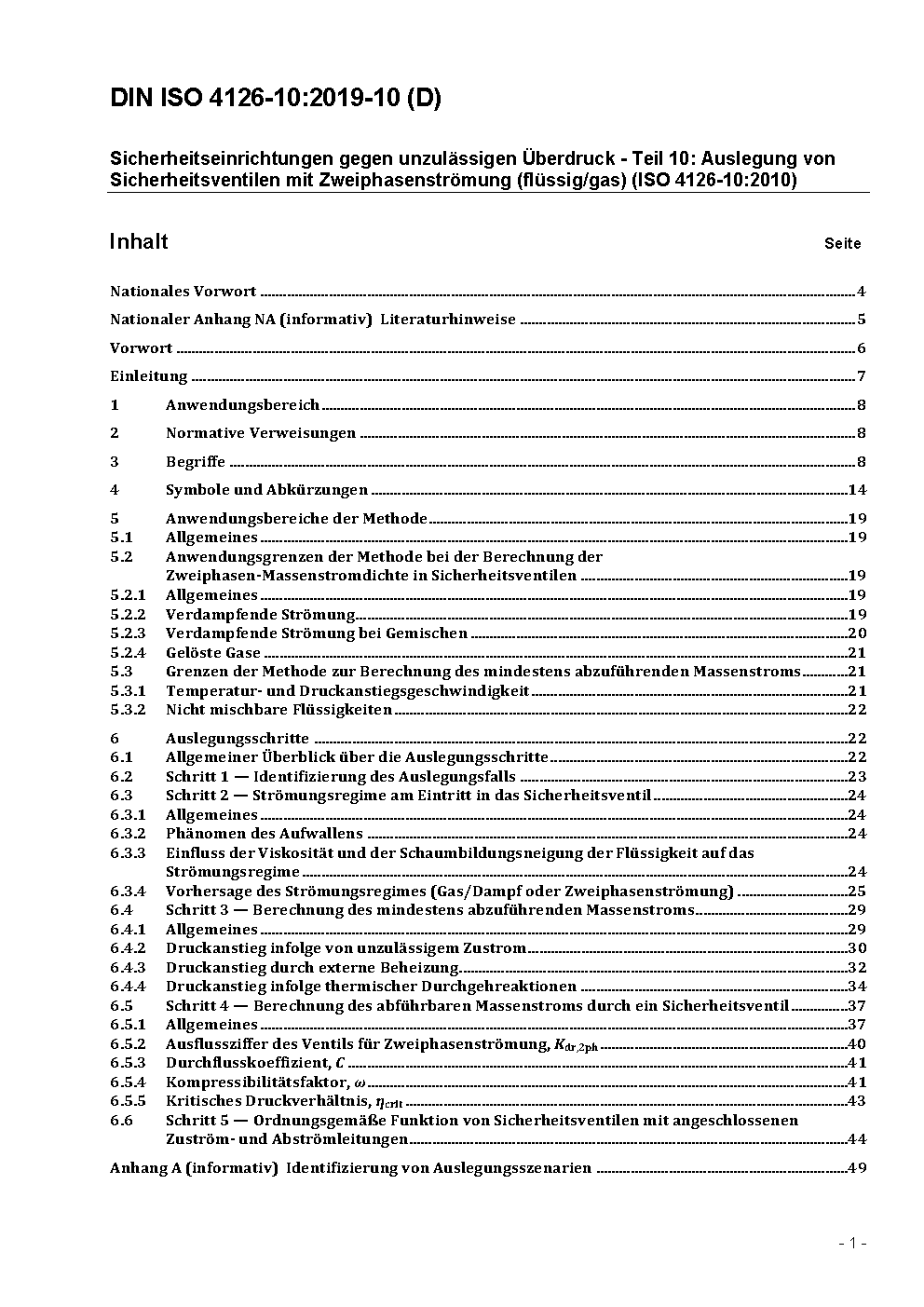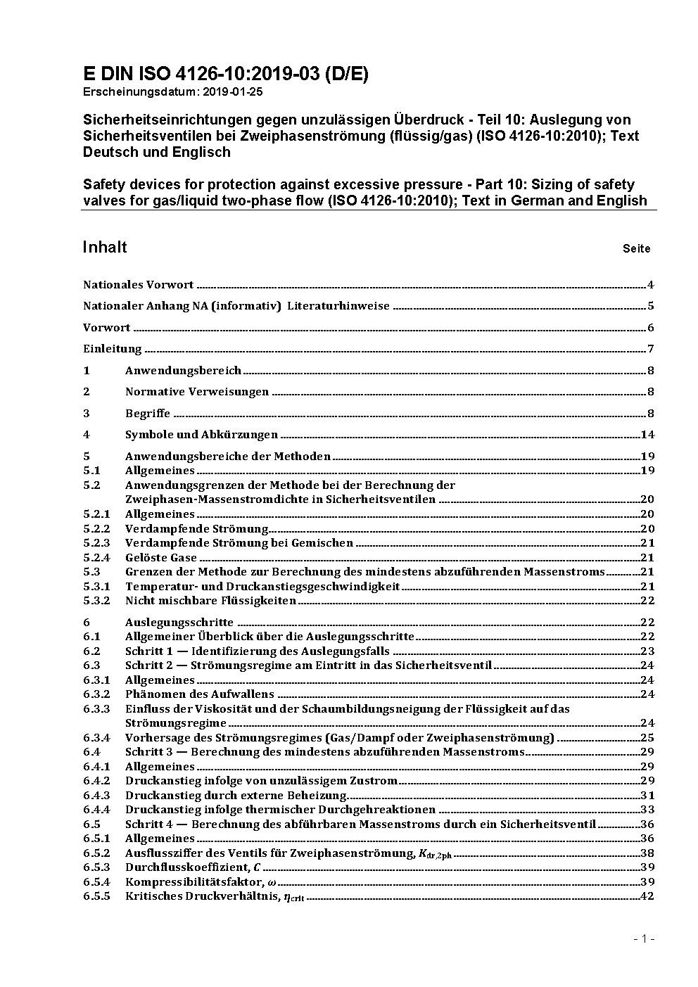 Sicherheitseinrichtungen gegen unzulässigen Überdruck - Teil 10: Auslegung von Sicherheitsventilen mit Zweiphasenströmung (flüssig/gas) (ISO 4126-10:2010)