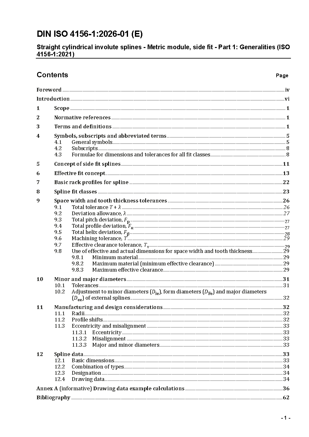 Straight cylindrical involute splines - Metric modul, side fit - Part 1: Generalities (ISO 4156-1:2021); Text in German and English