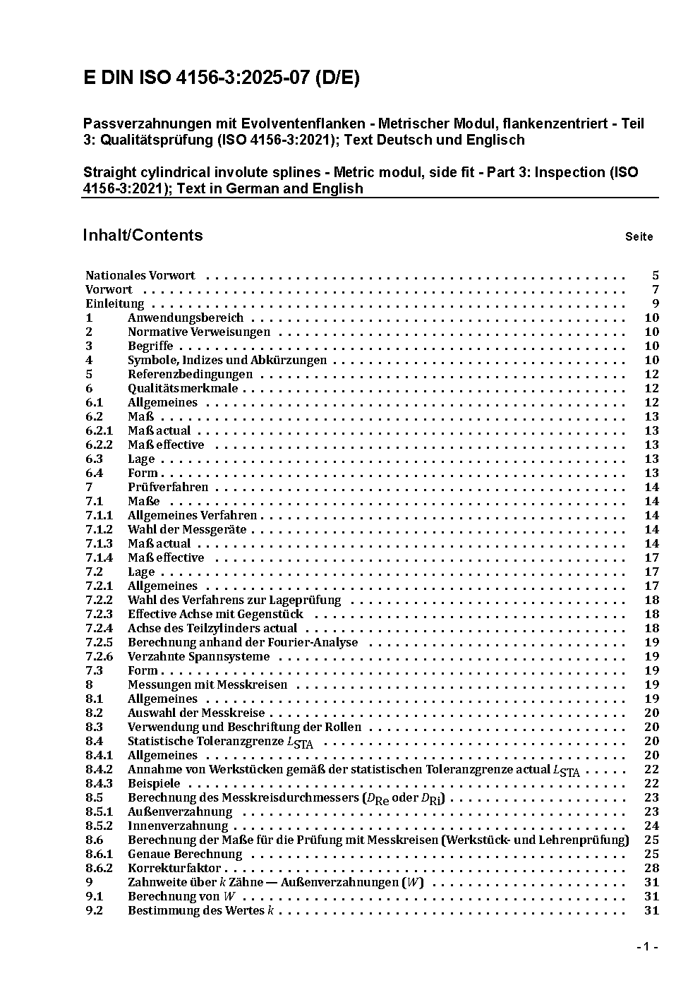 Passverzahnungen mit Evolventenflanken - Metrischer Modul, flankenzentriert - Teil 3: Qualitätsprüfung (ISO 4156-3:2021)