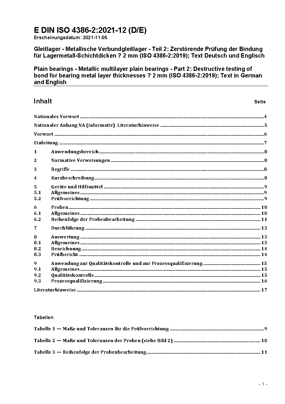 Gleitlager - Metallische Verbundgleitlager - Teil 2: Zerstörende Prüfung der Bindung für Lagermetall-Schichtdicken 2 mm (ISO 4386-2:2019)