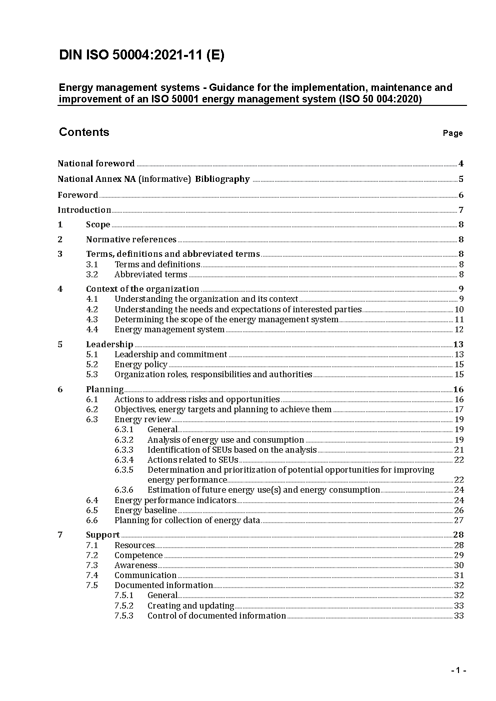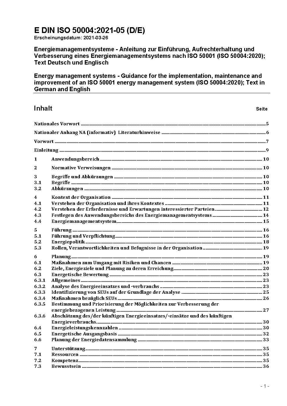 Energiemanagementsysteme - Anleitung zur Einführung, Aufrechterhaltung und Verbesserung eines Energiemanagementsystems nach ISO 50001 (ISO 50004:2020)