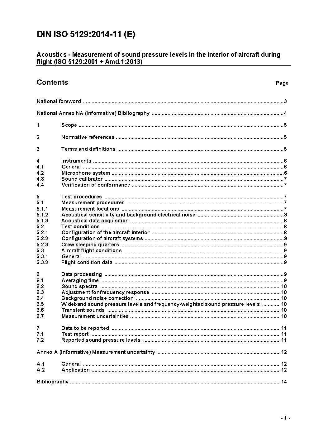 Akustik - Messung des Schalldruckpegels in Luftfahrzeugen während des Fluges (ISO 5129:2001)