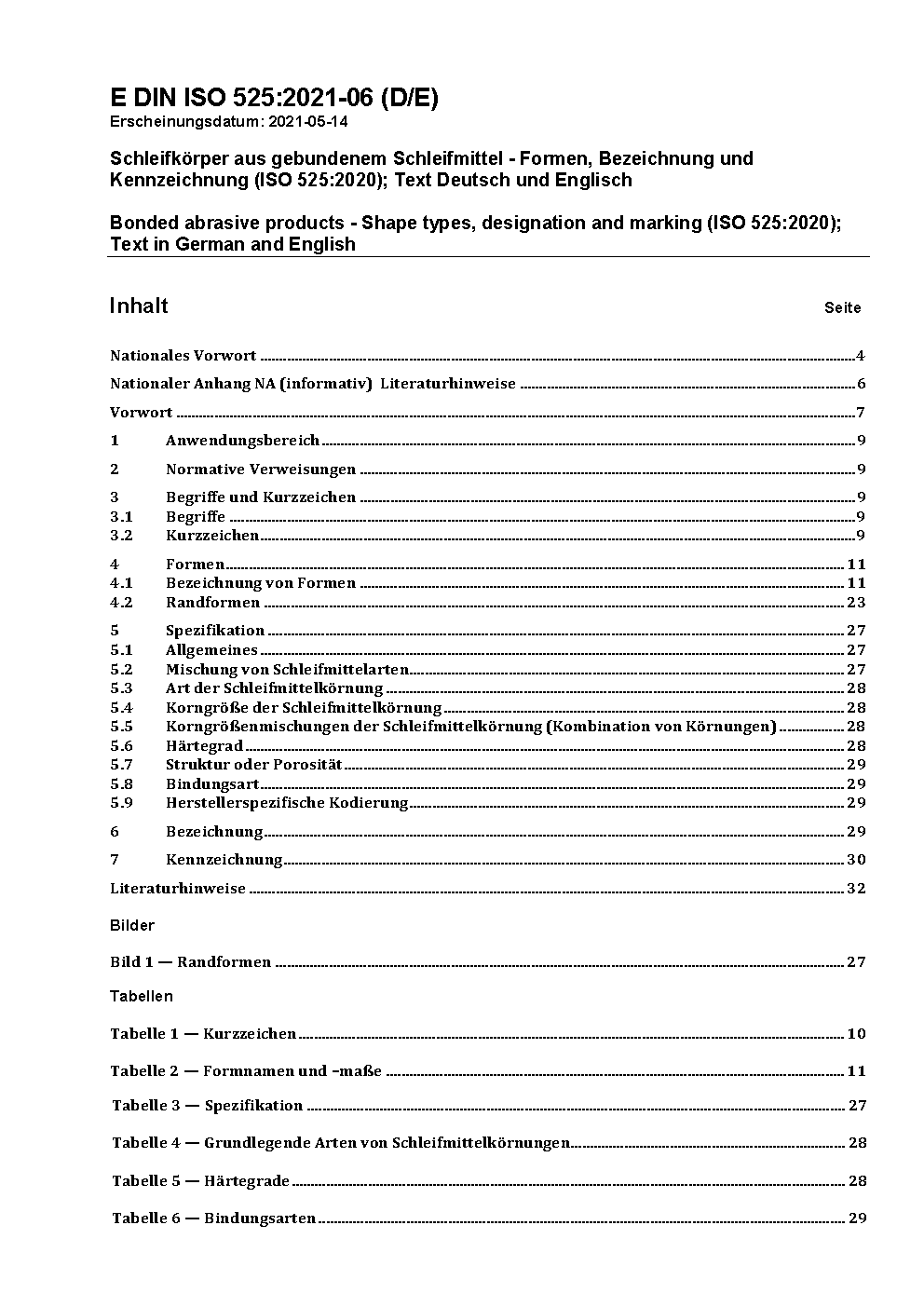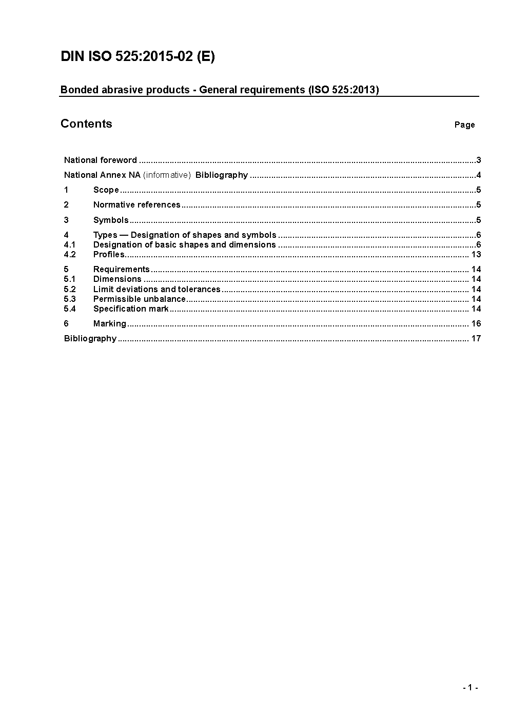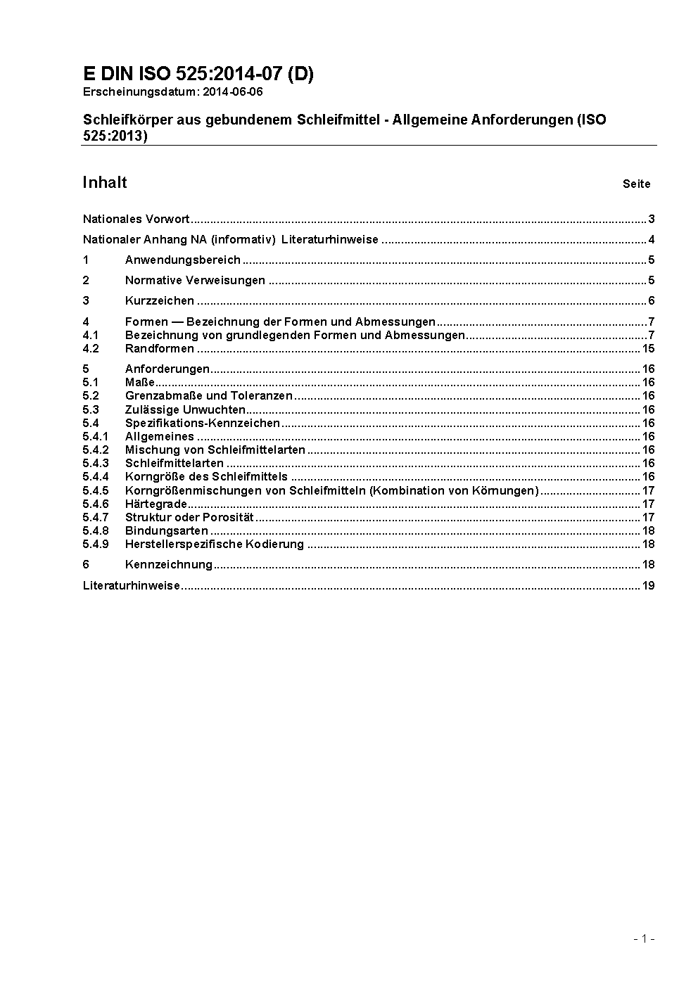 Schleifkörper aus gebundenem Schleifmittel - Allgemeine Anforderungen (ISO 525:1999)