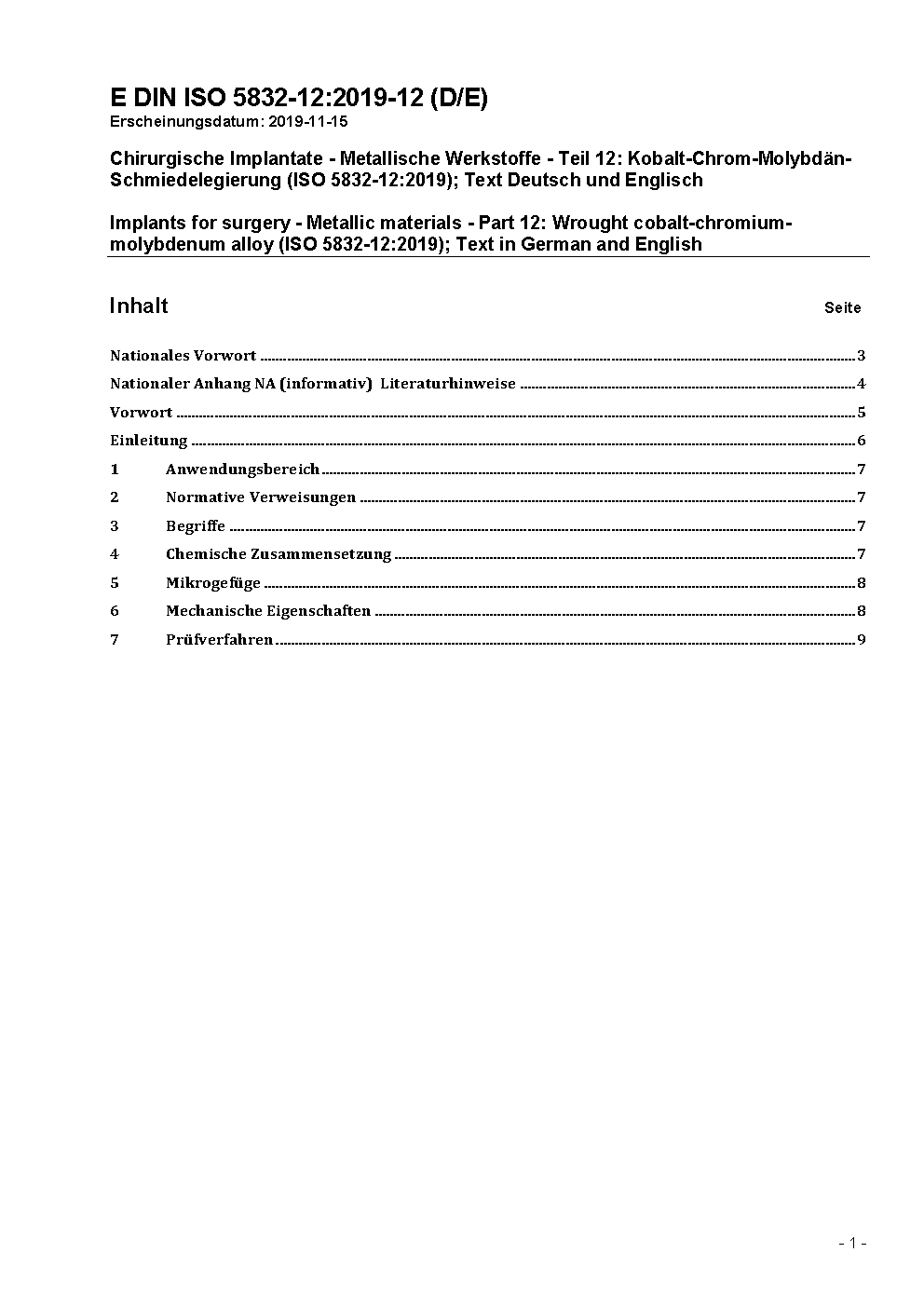 Chirurgische Implantate - Metallische Werkstoffe - Teil 12: Kobalt-Chrom-Molybdän-Schmiedelegierung (ISO 5832-12:1996)