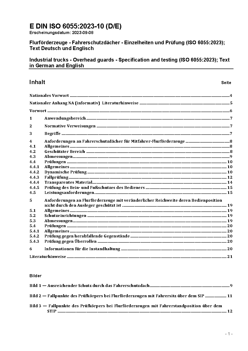 Industrial trucks - Overhead guards - Specification and testing (ISO 6055:2023); Text in German and English