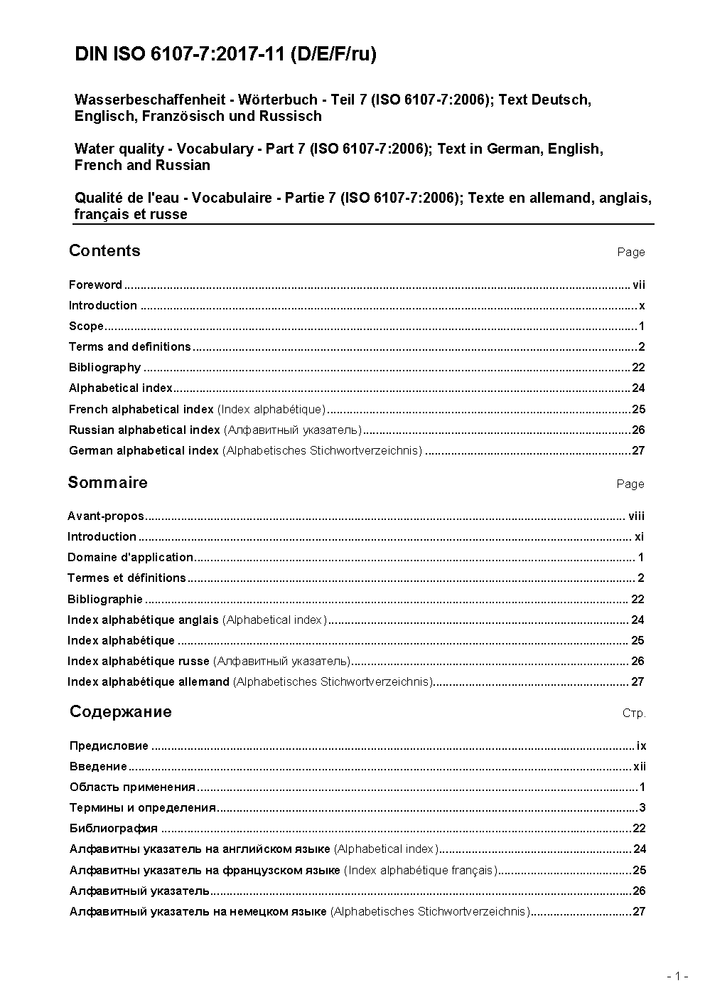 Water quality - Vocabulary - Part 7 (ISO 6107-7:2006); Text in German, English, French and Russian