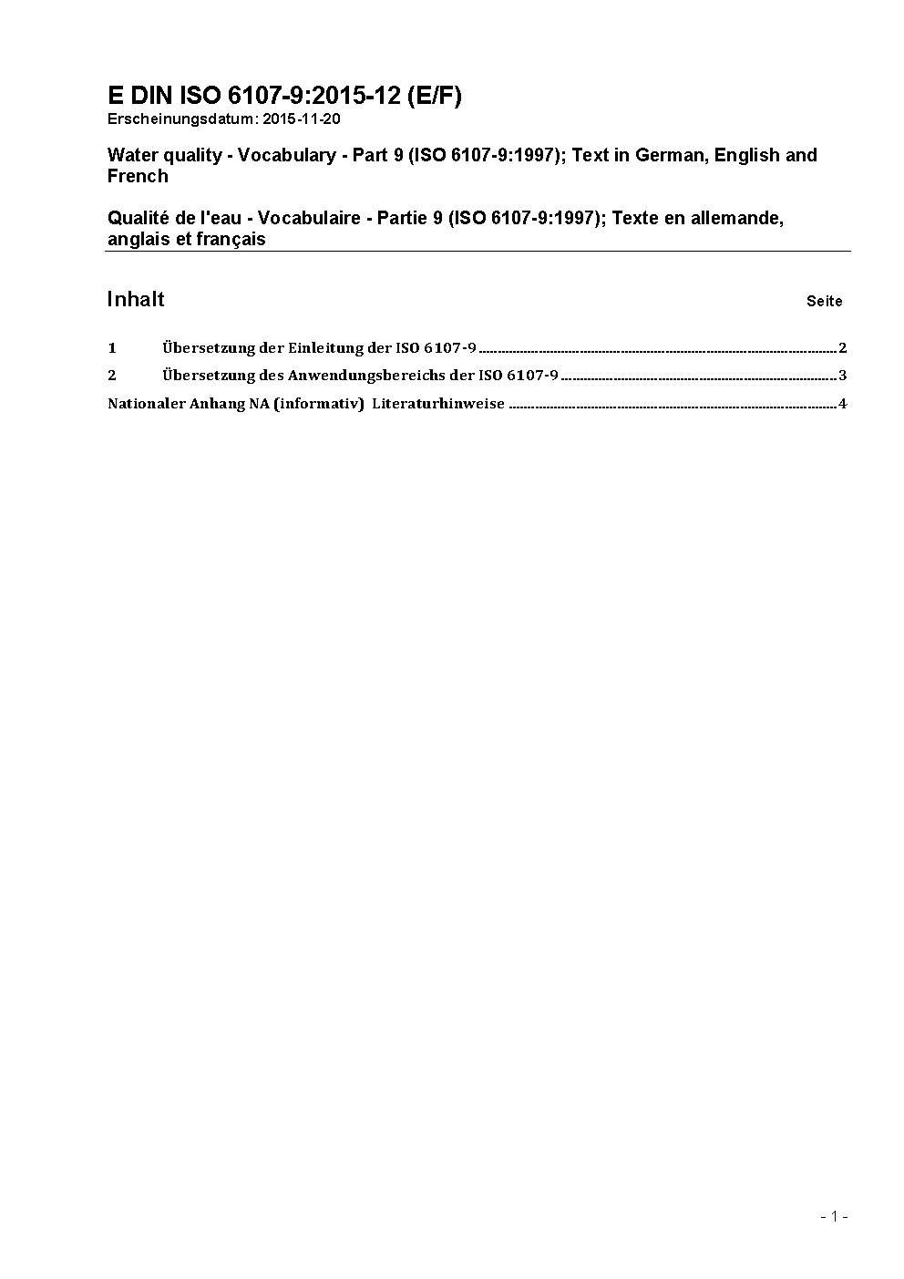 Water quality - Vocabulary - Part 9 (ISO 6107-9:1997); Text in German, English and French