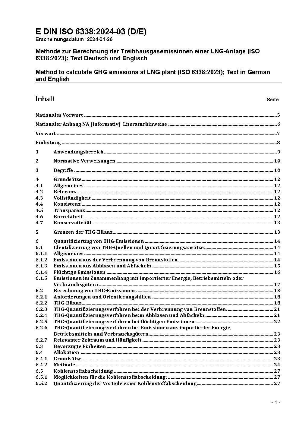 Method to calculate GHG emissions at LNG plant (ISO 6338:2023); Text in German and English