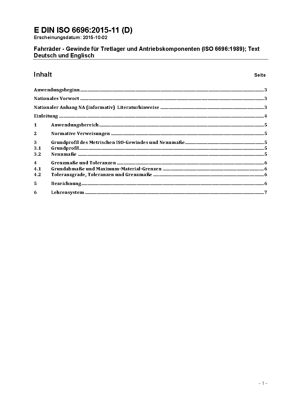 Fahrräder - Gewinde für Tretlager und Antriebskomponenten (ISO 6696:1989)