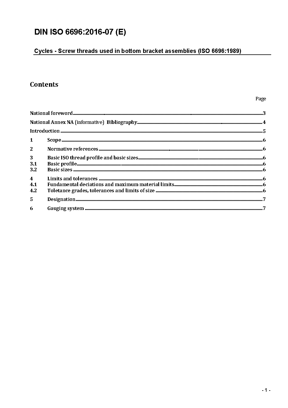 Cycles - Screw threads used in bottom bracket assemblies (ISO 6696:1989)