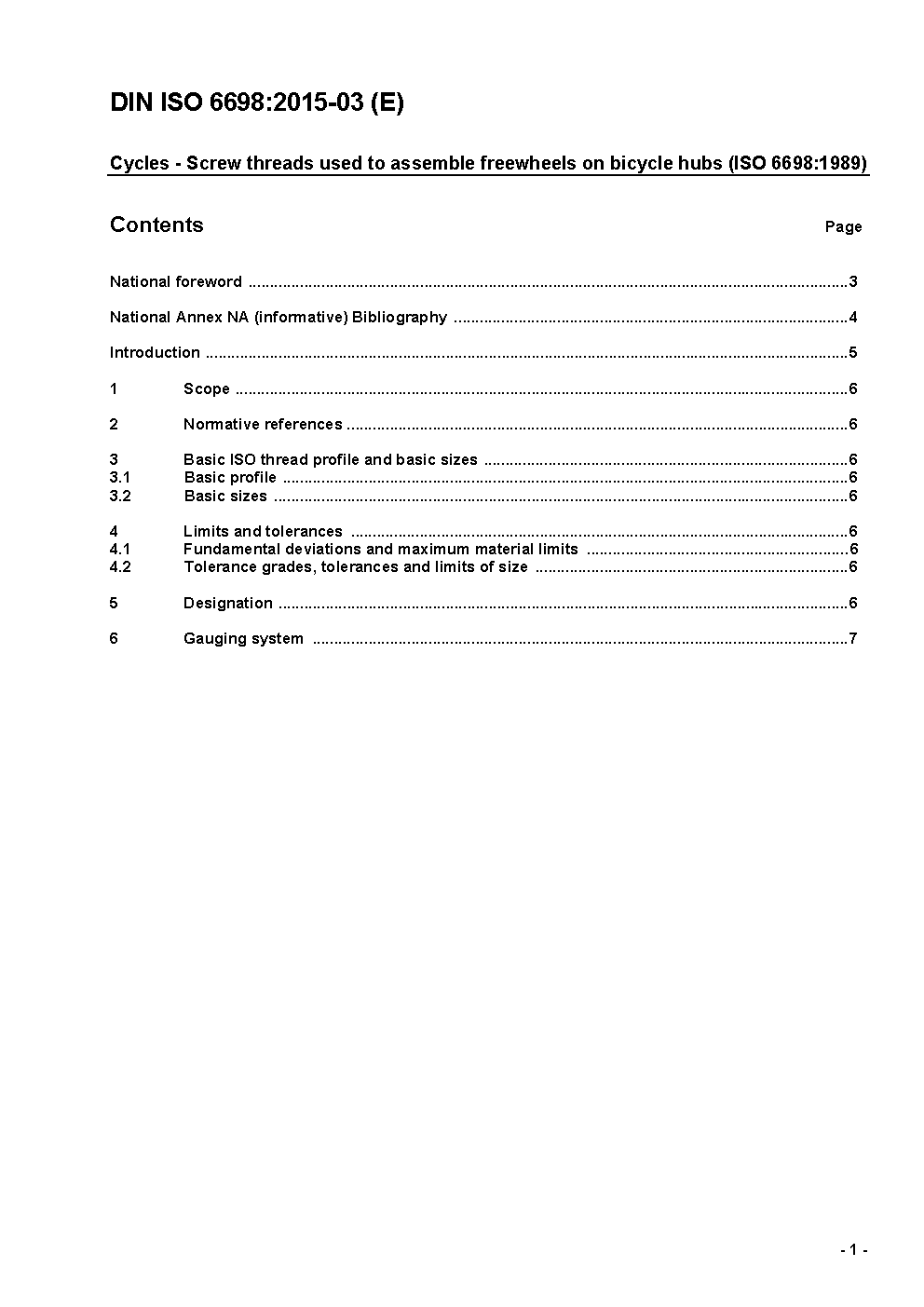 Cycles - Screw threads used to assemble freewheels on bicycles hubs (ISO 6698:1989)