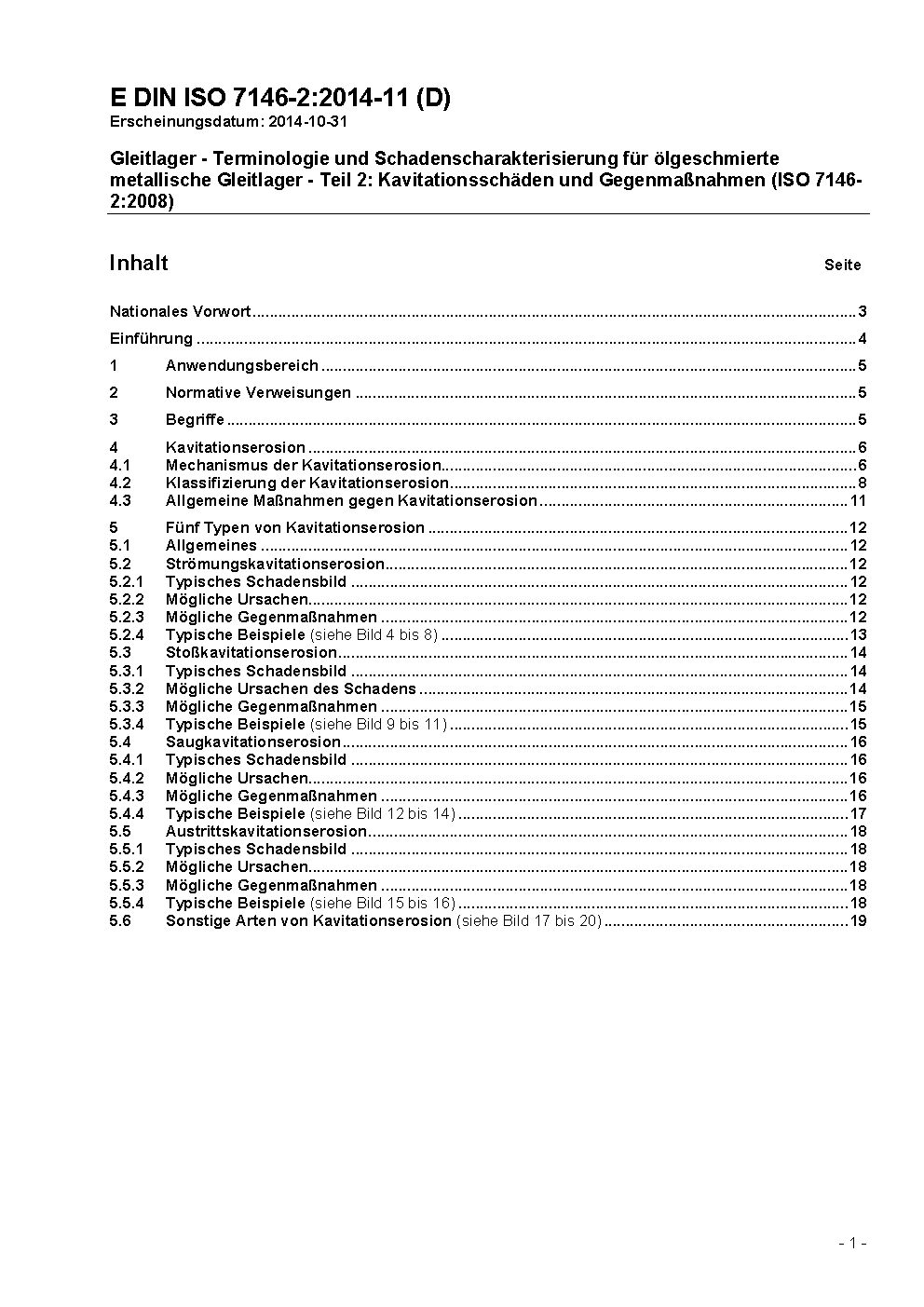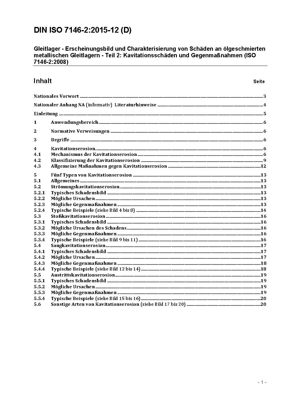 Gleitlager - Erscheinungsbild und Charakterisierung von Schäden an ölgeschmierten metallischen Gleitlagern - Teil 2: Kavitationsschäden und Gegenmaßnahmen (ISO 7146-2:2008)