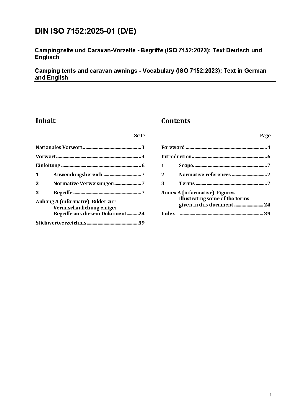 Camping tents and caravan awnings; vocabulary; identical with ISO/DIS 7152:1994