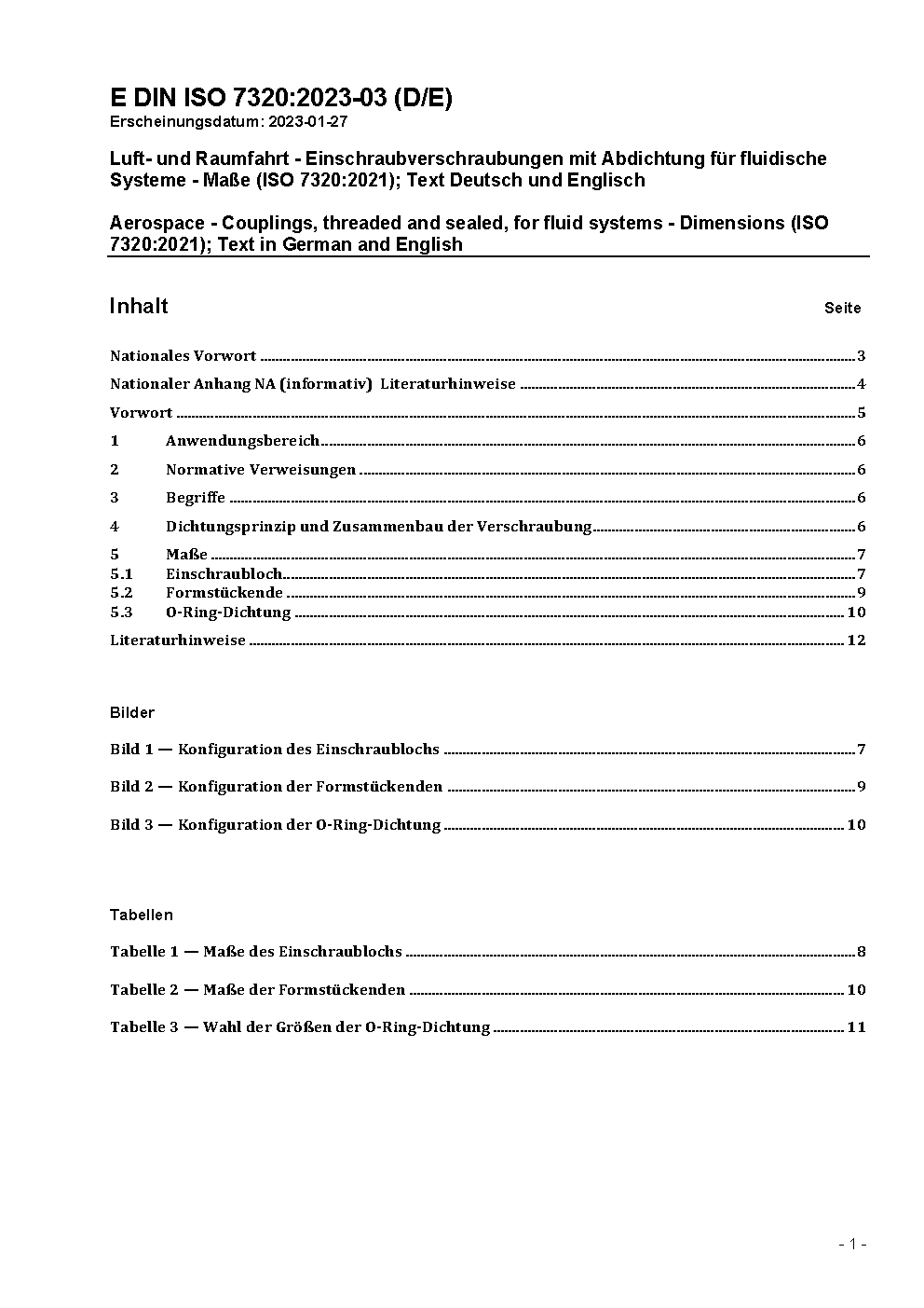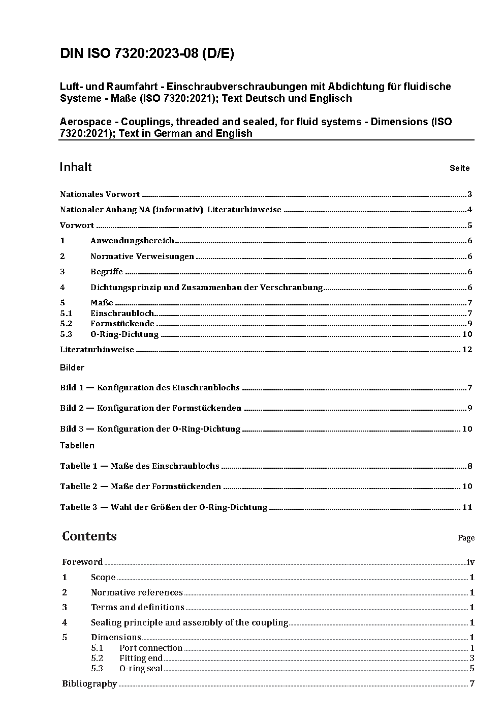 Aerospace - Couplings, threaded and sealed, for fluid systems - Dimensions (ISO 7320:2021); Text in German and English