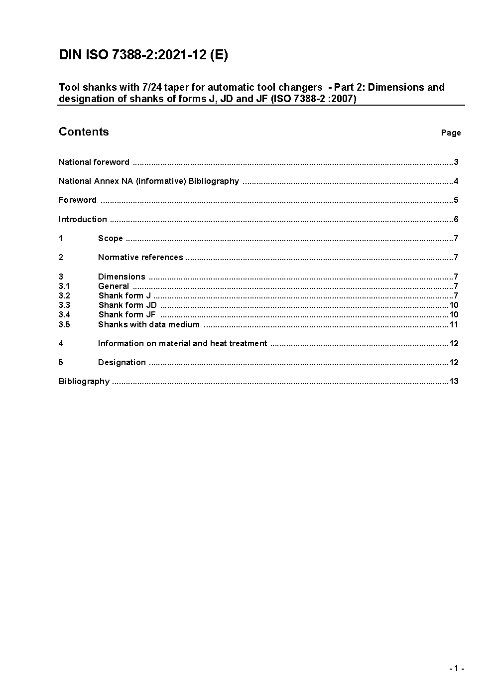 Tool shanks with 7/24 taper for automatic tool changers - Part 2: Dimensions and designation of shanks of forms J, JD and JF (ISO 7388-2:2007)