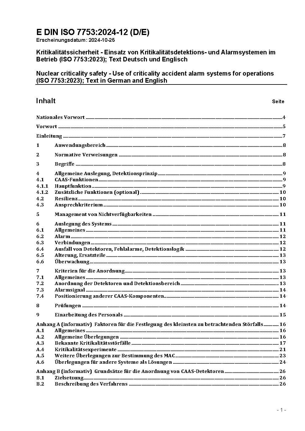 Kritikalitätssicherheit - Einsatz von Kritikalitätsdetektions- und Alarmsystemen im Betrieb (ISO 7753:2023); Text Deutsch und Englisch