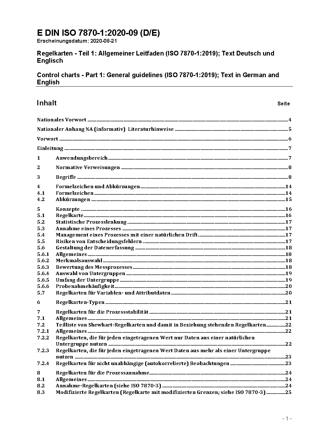 Regelkarten - Teil 1: Allgemeiner Leitfaden (ISO 7870-1:2019)