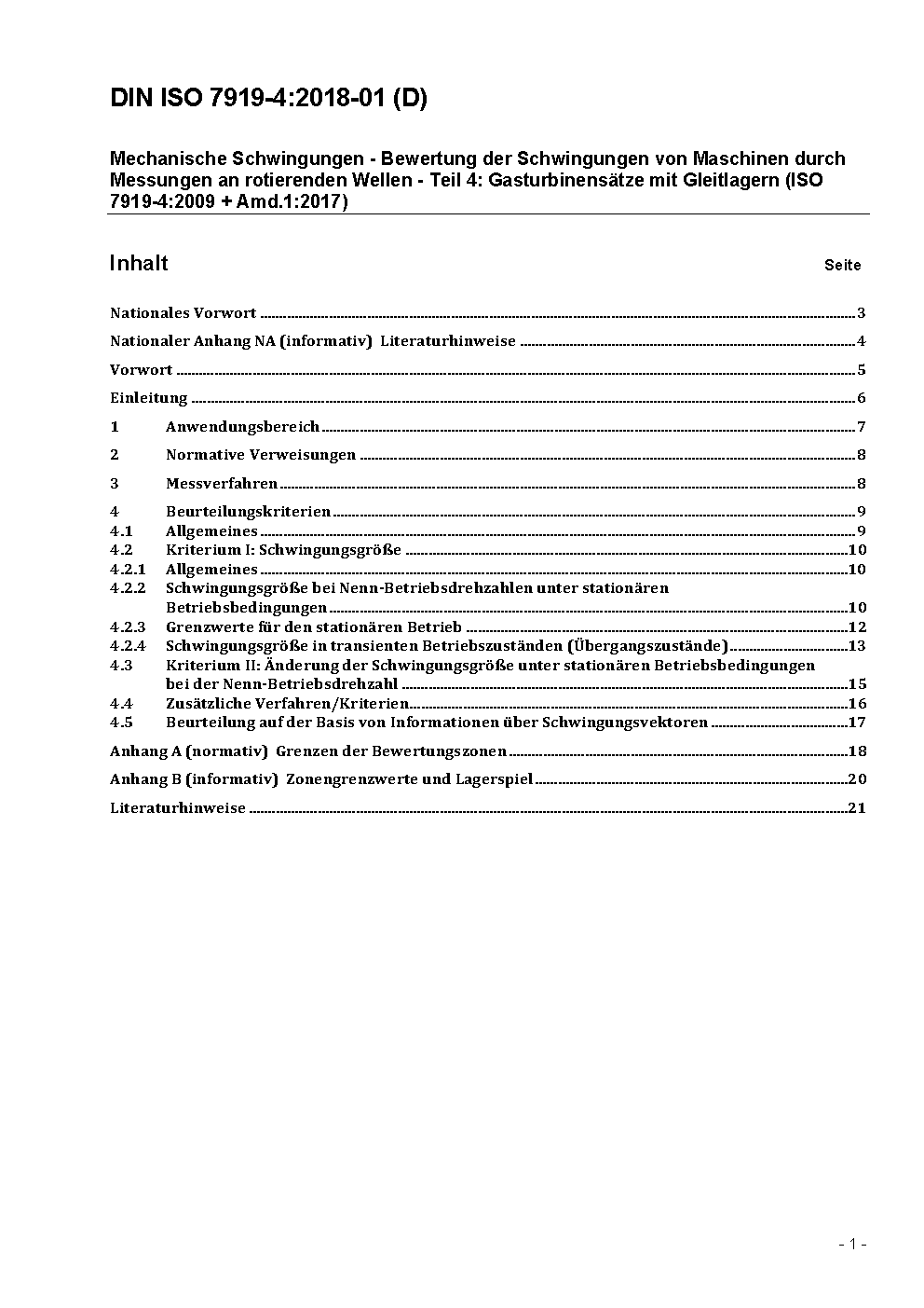 Mechanische Schwingungen von Maschinen mit Ausnahme von Kolbenmaschinen - Messung und Bewertung von Wellenschwingungen - Teil 4: Anleitungen für Gasturbinensätze; Identisch mit ISO 7919-4