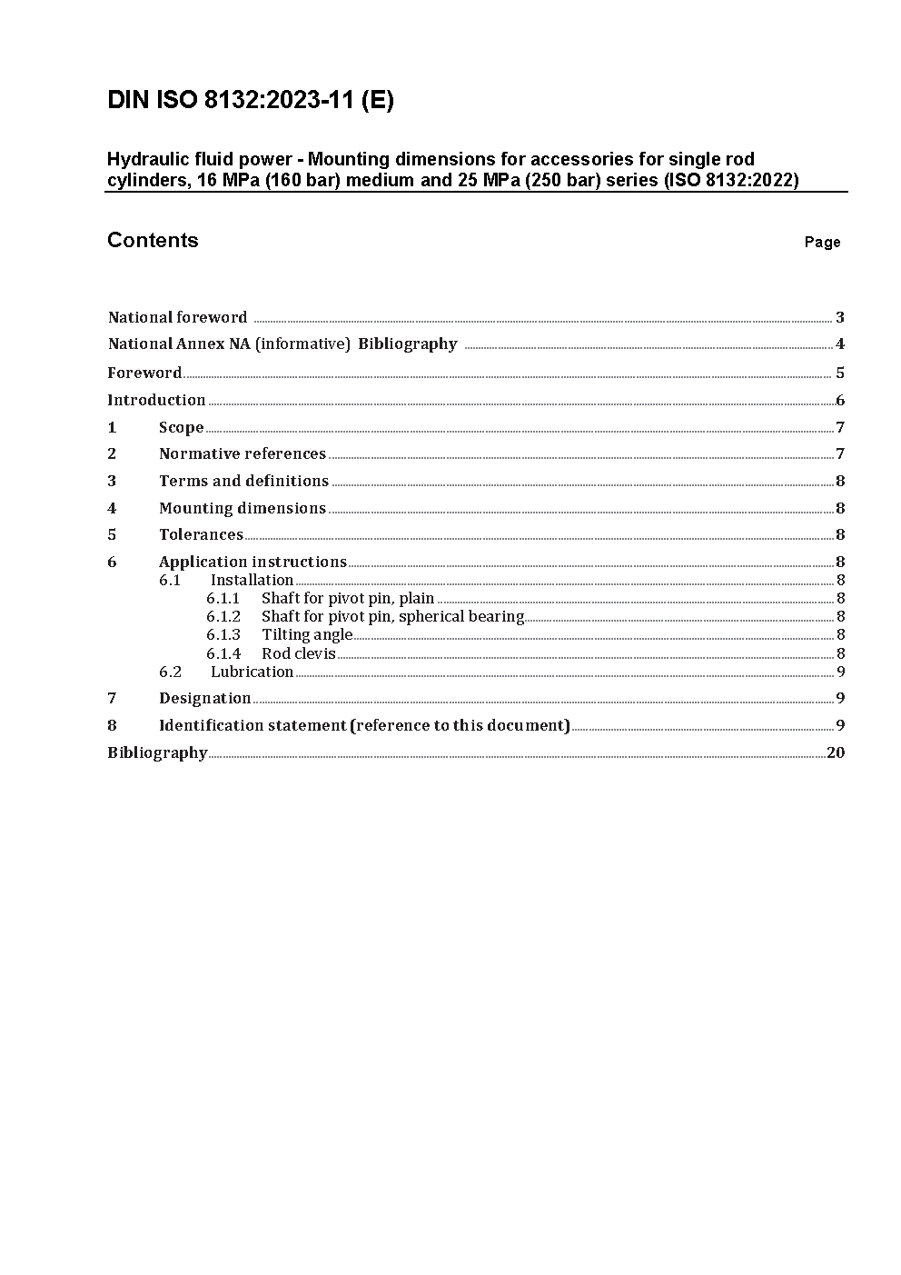 Hydraulic fluid power - Mounting dimensions for accessories for single rod cylinders, 16 MPa (160 bar) medium and 25 MPa (250 bar) series (ISO 8132:2014)