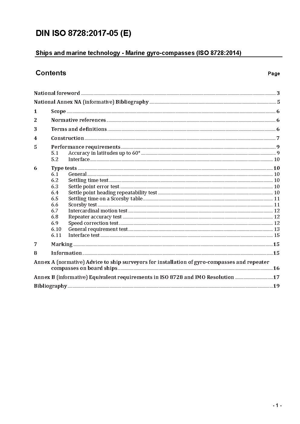 Ships and marine technology - Marine gyro-compasses (ISO 8728:2014); Text in German and English