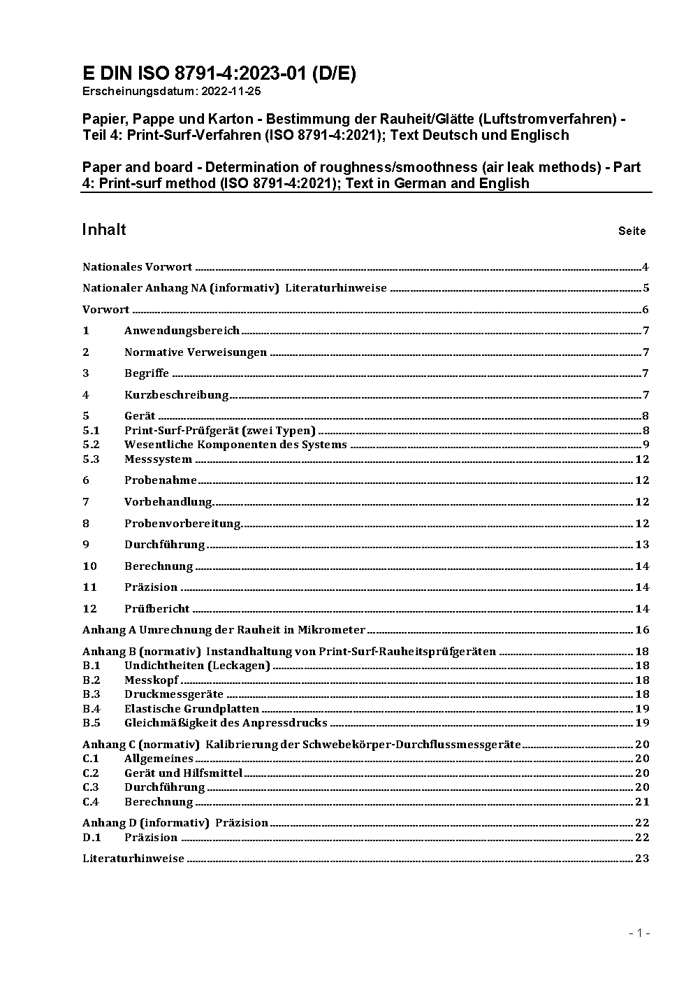 Papier, Pappe und Karton - Bestimmung der Rauheit/Glätte (Luftstromverfahren) - Teil 4: Print-Surf-Verfahren (ISO 8791-4:2007)