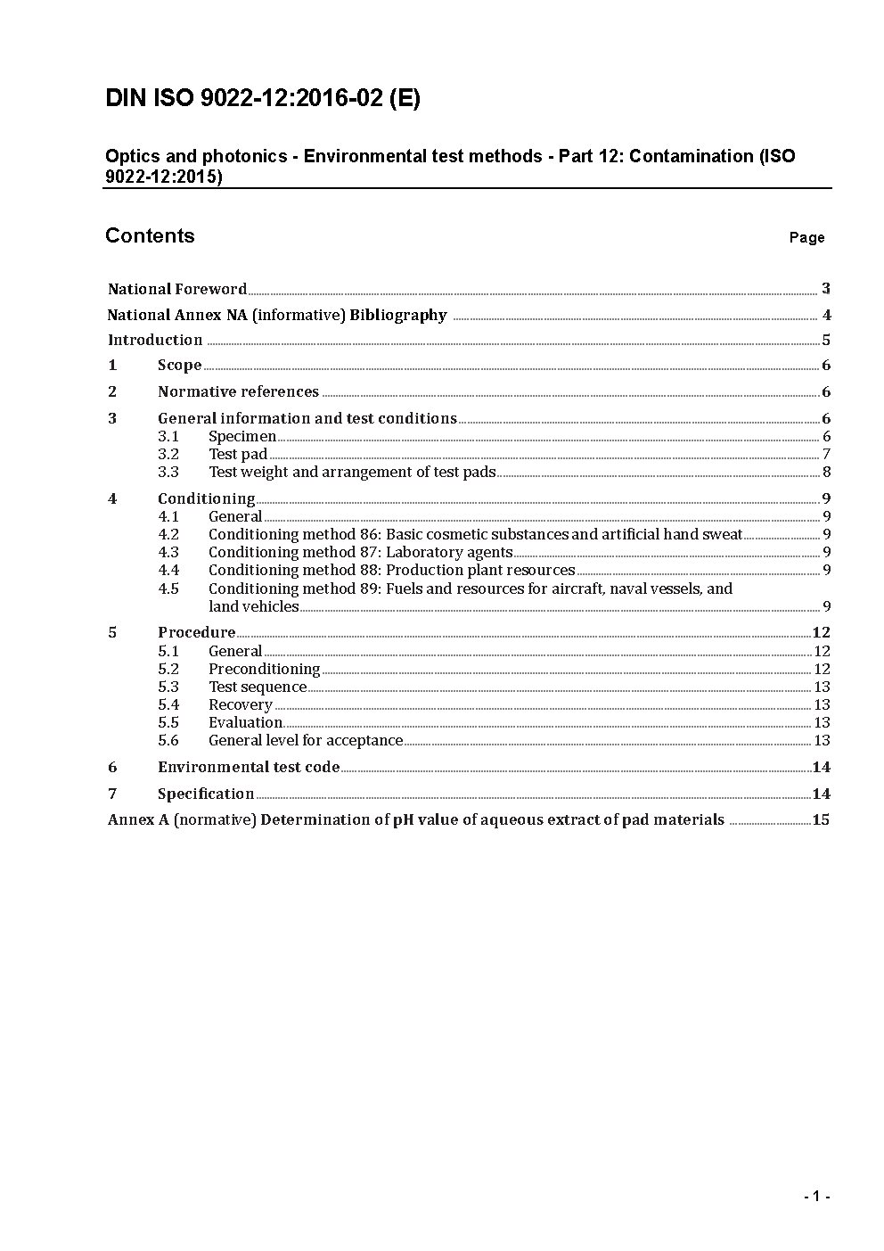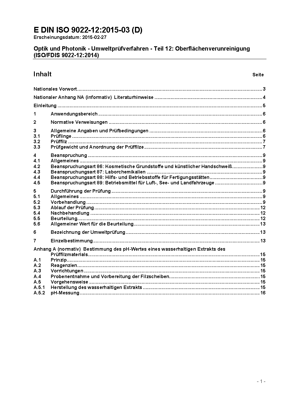 Optik und optische Instrumente - Umweltprüfverfahren - Teil 12: Oberflächenverunreinigung (ISO 9022-12:1994)