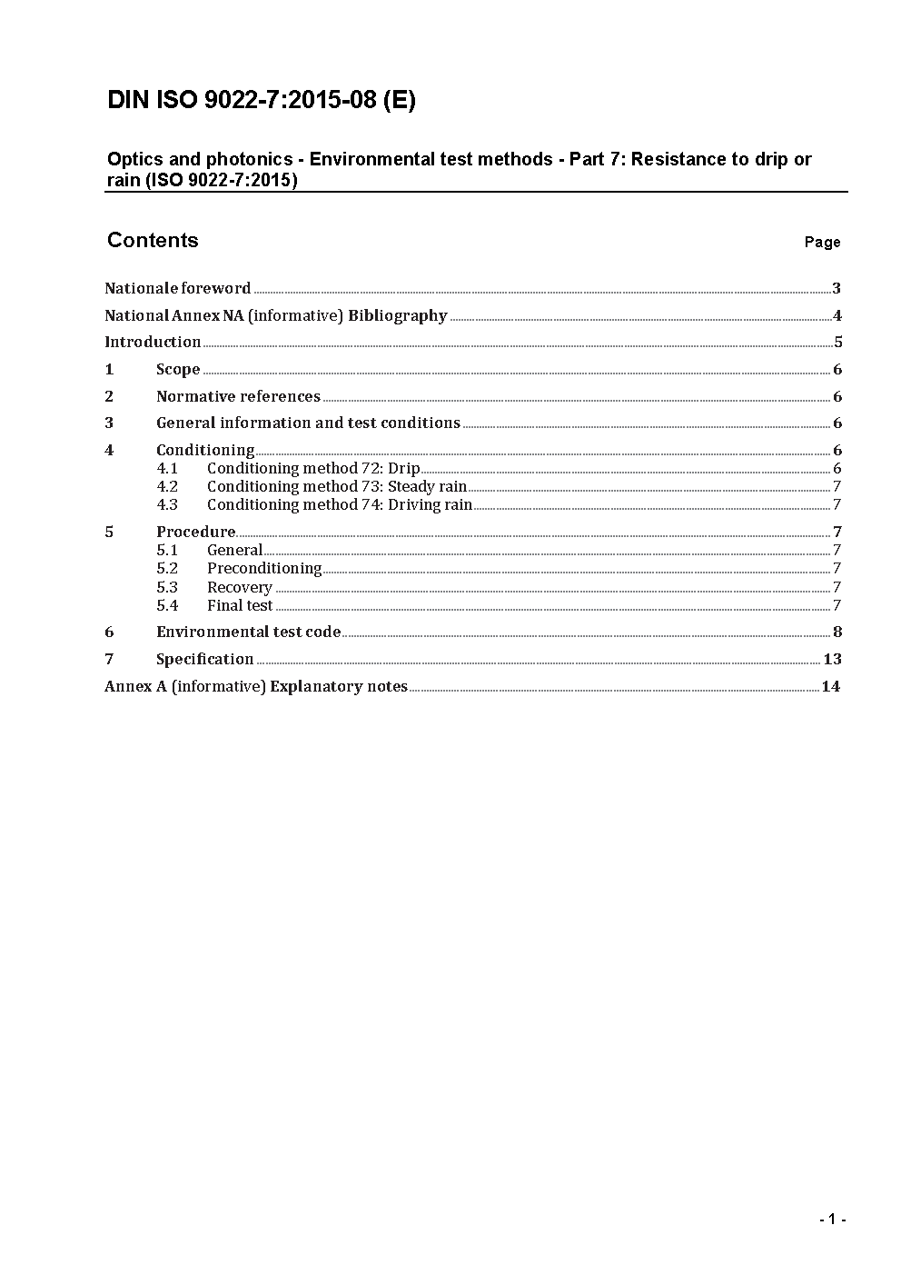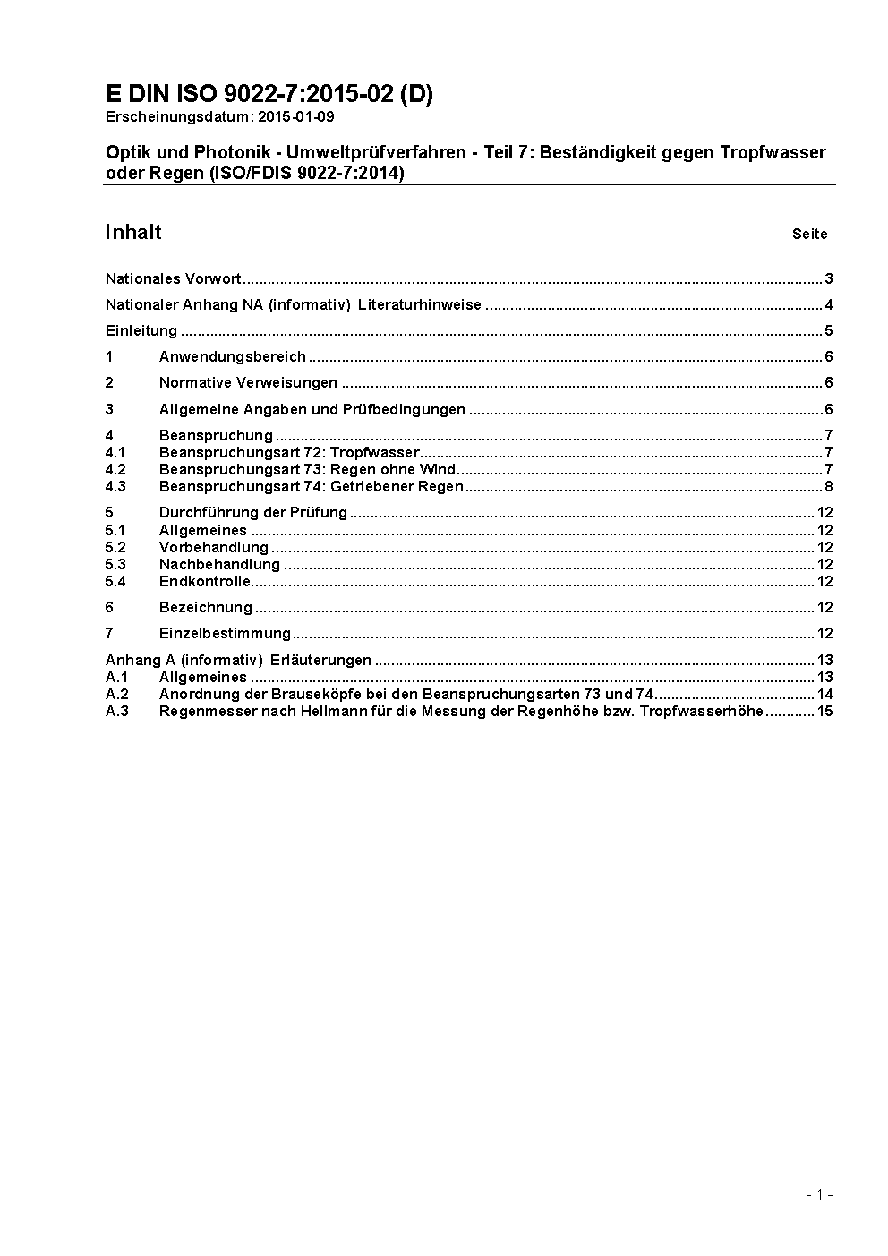 Optik und Photonik - Umweltprüfverfahren - Teil 7: Beständigkeit gegen Tropfen und Regen (ISO 9022-7:2005)
